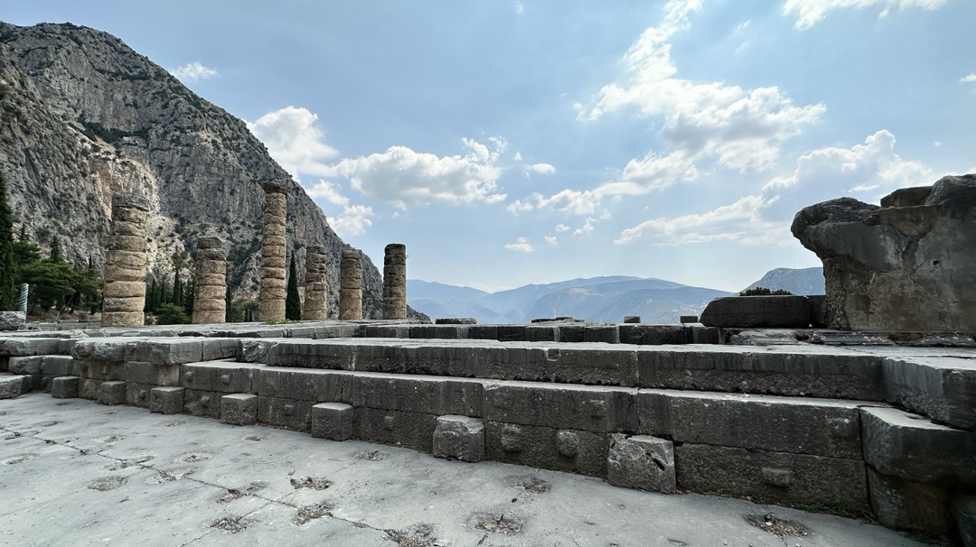 Today, we took a tour of the a temple of Delphi; the town of Arachola, and the Delphi Archaelogical Museum. It was an all-day deal, beginning at 8:30 A.M. and ending shortly after 6:00 P.M.