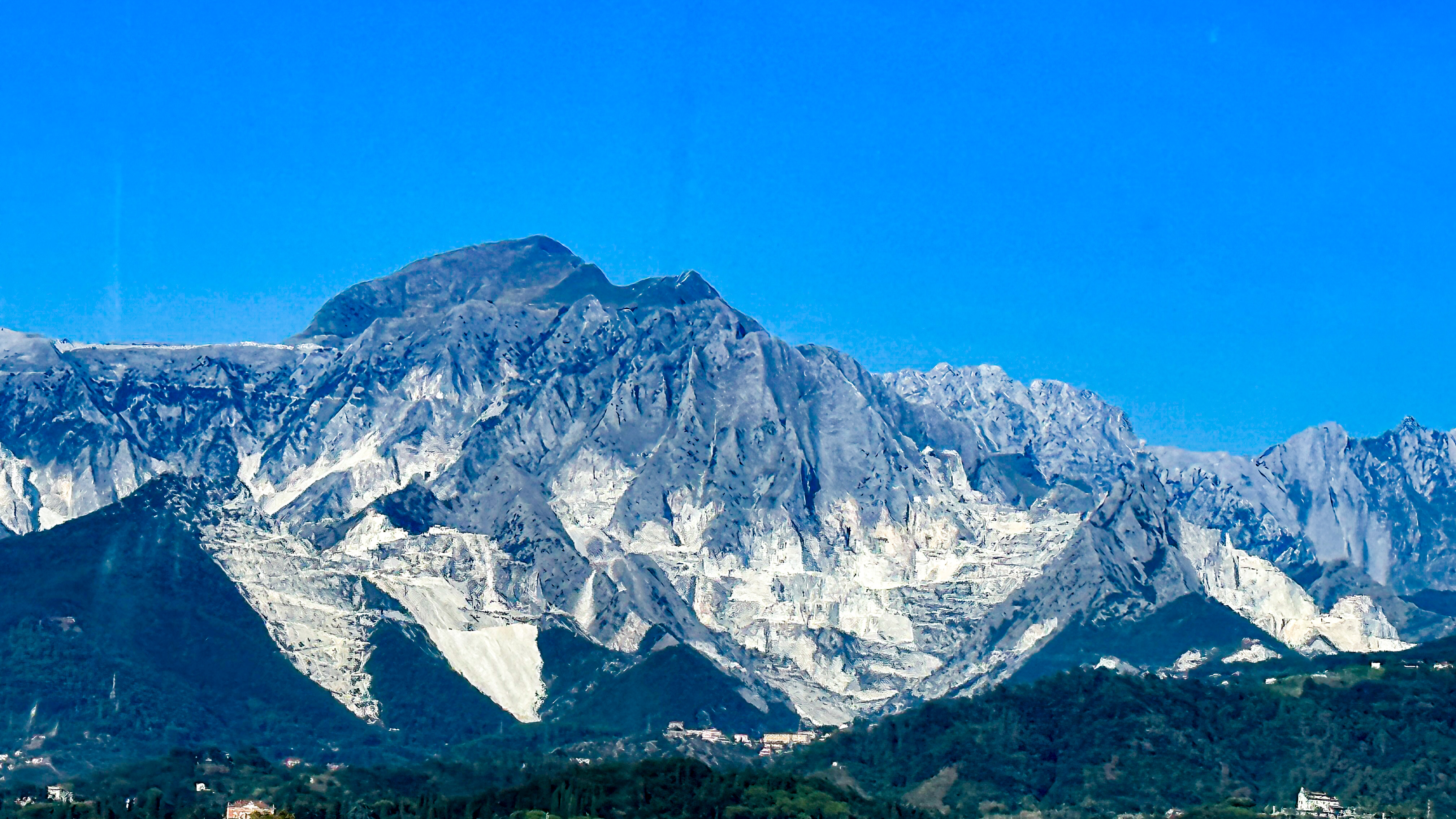 We passed the Pisan Mountains (the Appenines around Pisa), and saw the spectacular Apuan Alps towering behind them, with their blue-white hue because this is where the beautiful white marble of Carrara is mined! My grandmother and great-grandparents on nonno’s side were either born or lived there for some time, for example. Even Andrea Bocelli is from the Pisa area, Puccini, who wrote La Boheme, Madame Butterfly (operas) is from Lucca. Collodi, the author of Pinocchio, lived in Lucca. And let’s not even begin with the big names that came from Florence!