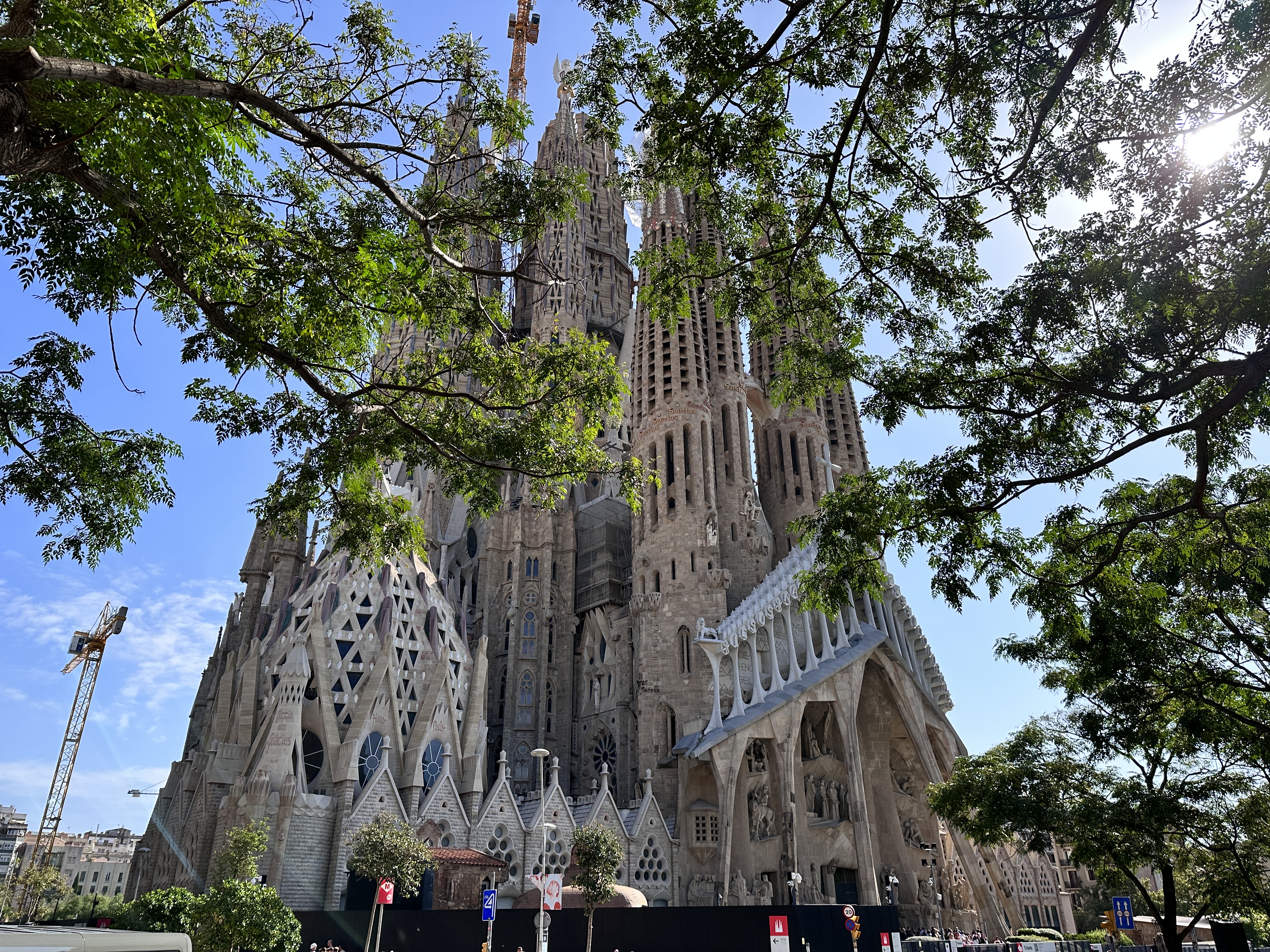 We saw so many city highlights today, and we were able to take some beautiful pictures of the exterior of Sagrada Familia Church. Recall that yesterday we did get beautiful photos of the interior and exterior, but we could not physically linger because of the sometimes heavy rain.