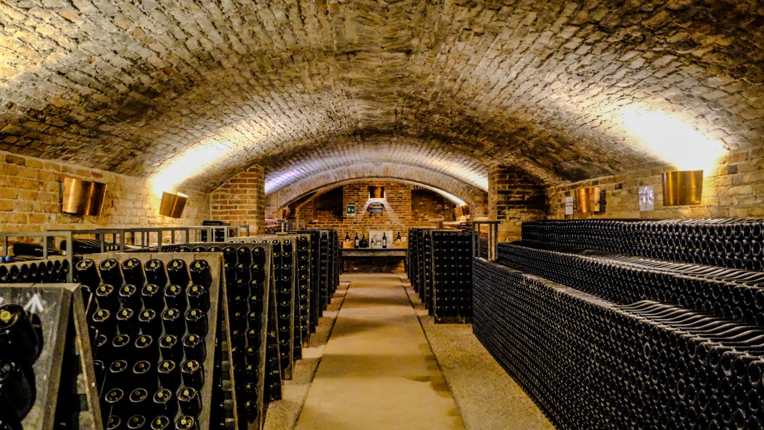 We traveled to Canelli, a nearby town we have been passing many times this week. Our hosts suggested that we visit the subterranean cathedrals, which are UNESCO World Heritage Sites, as well. It turns out that these are not Church-type Cathedrals at all. Rather, they are more like wine storage/aging underground tunnels where wines are kept in perfect temperatures year-round to do their thing on their way to becoming exquisite—and usually more expensive—wines made from the best grapes grown in these langhe. Major wine labels claim their own spaces in this subterranean environment, wines and spumantes, for example, of the likes of Gancia (Asti Spumante), Bosca, Coppo, and Contratto…. We took a tour of the Contratto tunnels and underground cathedral. The tour guide explained how their spumantes are developed, from vine to market, showed us tons and tons of bottles of wine at different phases of maturity, and served us about five different kinds of Contratto spumantes plus one vermouth along with some delectable finger food snack-type items. We purchased a bottle of Rose Spumante for our hosts. This was a most enjoyable and informative tour that we had not planned on taking!