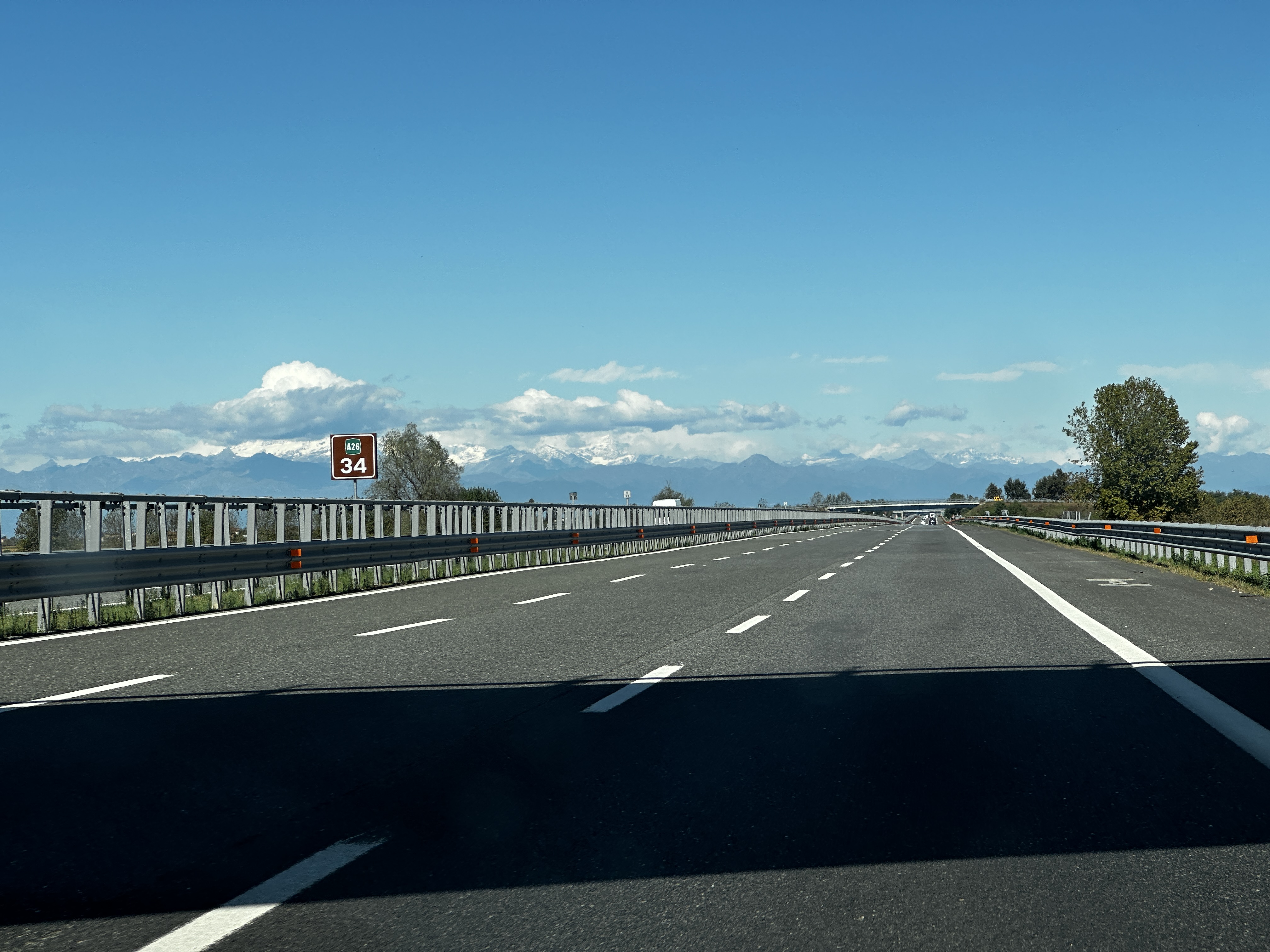 After a final packing and loading session, it was time to say good-bye to Francesco and Maria Angela! Very sad to leave them but hoping that we will somehow stay in touch. Off we went toward our next stop: Lago di Como, Lezzeno, in the region of Lombardia. The sun was shining, and the temp climbed to the high 60s, there was little to no haze, and the visibility on the Montabone surroundings was unobstructed. Before we left that charming little town, we drove to the center of town from which we could see the snow-covered Alps, more specifically Mount Rosa, I believe, in the distance! WOW! What a spectacular view!