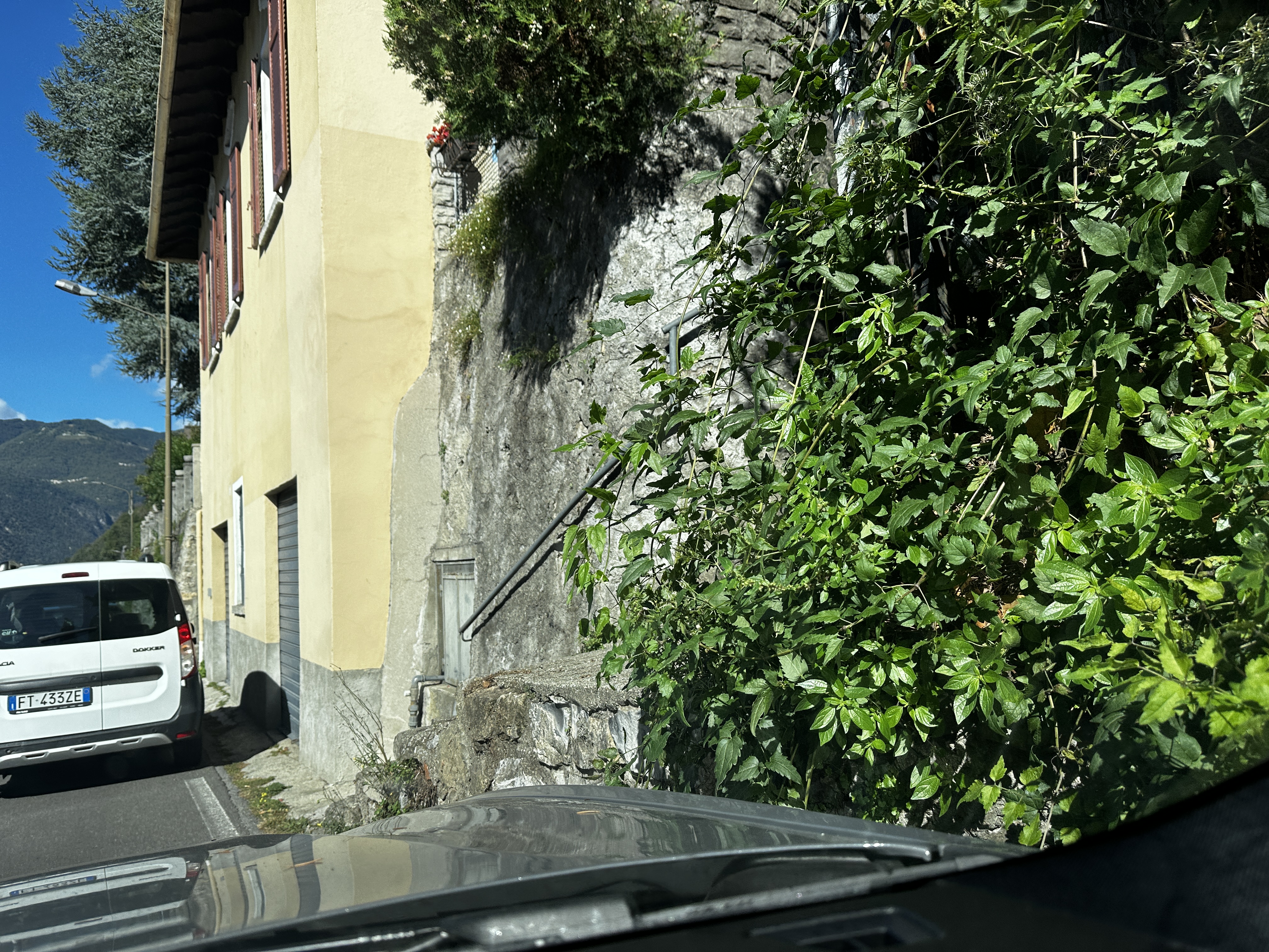 Parking in Lezzeno is hard to find. There just isn’t enough space for traffic. When we arrived close to our B&B today, we parked in a small parking lot for about five cars total. That lot, though, is not all that close to the B&B itself. One has to walk with whatever luggage and whatnot one has along a winding and uphill narrow path, with uneven cobblestone or concrete flagstone terrain, for several minutes. Upon arrival, one must carry the luggage up a set of concrete steps. To go to the small grocery store nearby or to the nearest restaurant for something to eat, one has to either drive along a crazy narrow road or walk down a steep concrete paved road on the side of the narrow street along with whatever cars or other vehicles/bikes/people/buses/trucks happen to be intending to use that same road as well. Tomorrow is Sunday, and Mass will be in a Church about a mile-and-a-half away, but we will need to drive early enough in order to hopefully find parking somewhere nearby. People who live and work here tell me that “nothing scares them anymore,” that “that’s the way the streets are,” and they just do whatever it takes to navigate to wherever they must go. For us, though, because we are not used to this, driving in Lezzeno appears to be a challenging experience. Then again, that’s today, our first day here. Perhaps tomorrow things will ease up with a degree of familiarity.