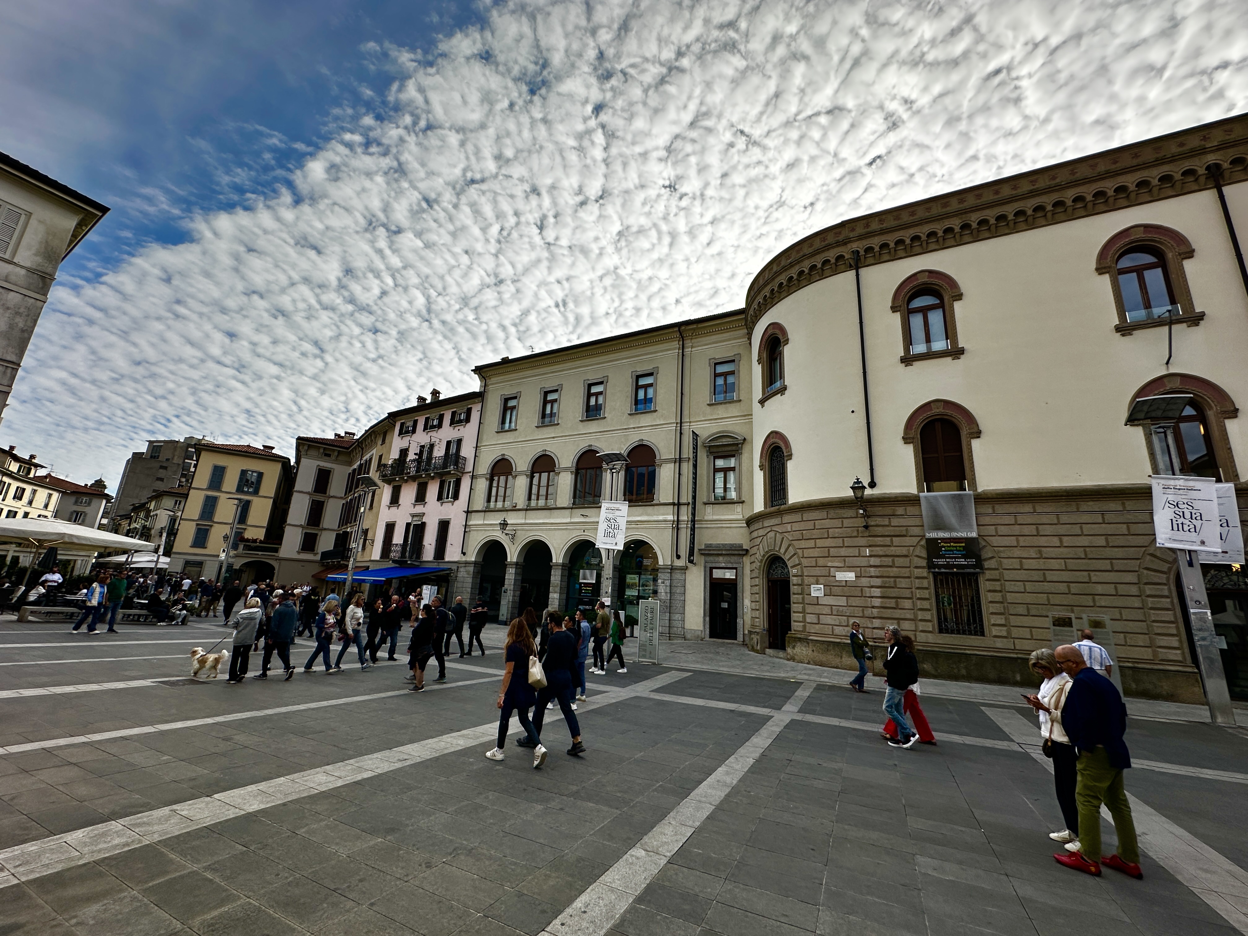 A bit frustrated by the contrast between the stupendous natural beauty of our environment, the extraordinary gorgeous views of Lago di Como that our B&B provides, and the steep inclines and declines of the roads in Lezzeno, we found a way to somewhere else. First, we drove to Bellagio, our next door neighbor on this side of the Lake. It was a different, more built-up/better manicured city than Lezzeno, perhaps. There were lots of people there, and a main center that appeared to have some food establishments available and open at this time; however, couldn’t find any parking. We drove on to the next bigger town called Lecco. THERE we found some parking, and there we found a town center, with a main piazza, open restaurants and cafes, lots of people, but also lots of space available. It was on Lake Como, too, so we also had the views. We ate at Hemingway’s in the Lecco town center. Dad had risotto periscope (with fried perch); I had…wait for it…GNOCCHI alla Gorgonzola. We shared a Caesar salad because for some reason, we have not been automatically served vegetables nor fruits these past two weeks (yes, we had some sometimes at our recent B&B, but not the quantities that we tend to have back home in the States). Dinner took almost two hours today, but the food was well done and delicious.