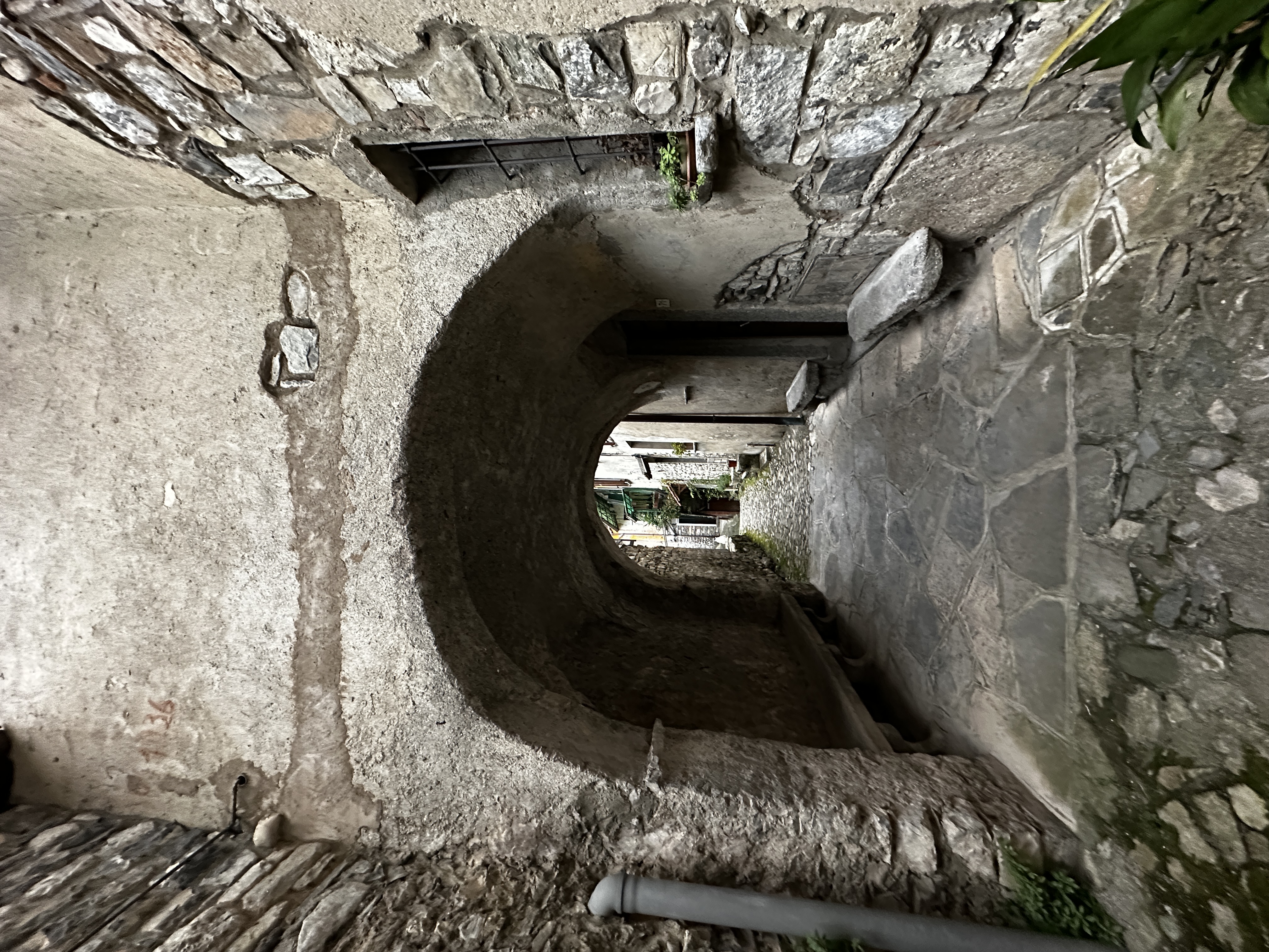 Farther down on this same path, I met a wonderful older woman whose name is Anna Maria. She was just bringing out the trash and taking her routine walk up to our B&B and back just to get some fresh air and keep joints moving. We struck up a conversation and walked together for a little while, as we discussed so many things, from family to her life story, to changes to the area brought by tourism, to parking shortages on the mountain and around this Lake more generally, to politics, to healthcare, to relationships, to children, to war, to religion, to wildflowers, to violence, to Mussolini (Il Duce, who was murdered just across this Lake), to faith. You name it, we somehow touched upon it. Our conversation lasted for quite some time, and we thoroughly delighted in it! Then, it was time to say good-bye. I watched her walk away as I checked in with Dad so that he would not think I’d gotten lost. Then, I went out again. Paolo had told me about more old, old houses up the mountain, and even a very old, old Church, La Madonna Dei Cespi (The Madonna of the Shrubs), way up the Mountain beyond those old, old houses, just a half-hour walk away (UPHILL) but beautiful, nonetheless. I thought I’d follow as much of that path as possible to see what I could see. It was getting late in the afternoon, and I did not really want to launch into a 30-minute uphill climb. Besides, the path was not necessarily paved/smooth/even. I am not known to be the most balance-perfect human being, that’s for sure.