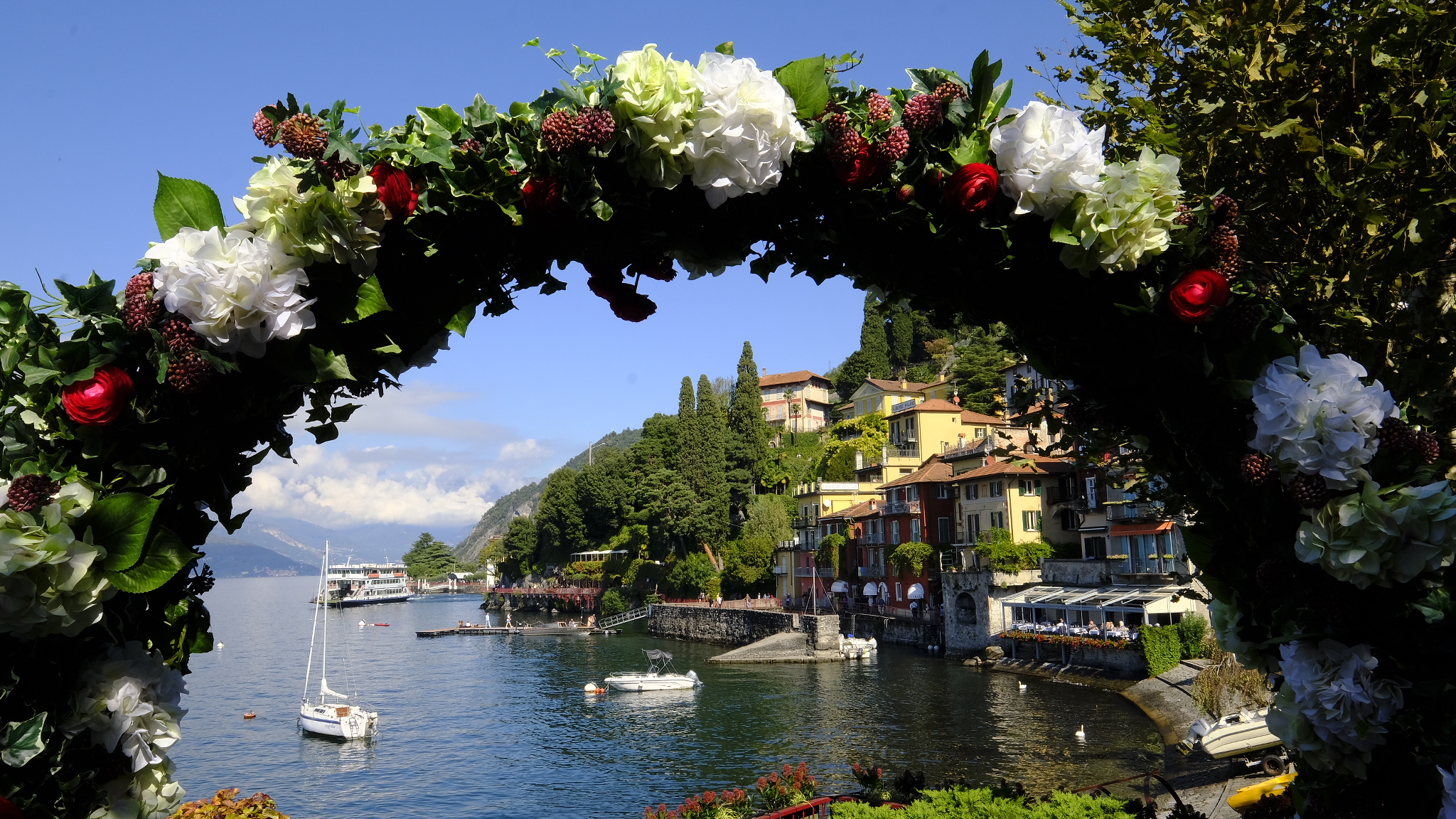 We drove to Varenna, a charming town on Lake Como a bit beyond Bellagio. The big topics for today are the following: We crashed another wedding (sort of); tight curves on the road and an impossible concrete arch; what goes down must also come back up; villas, gardens, and color, color, color; and tunnels beneath the mountain, but with several different looks inside.