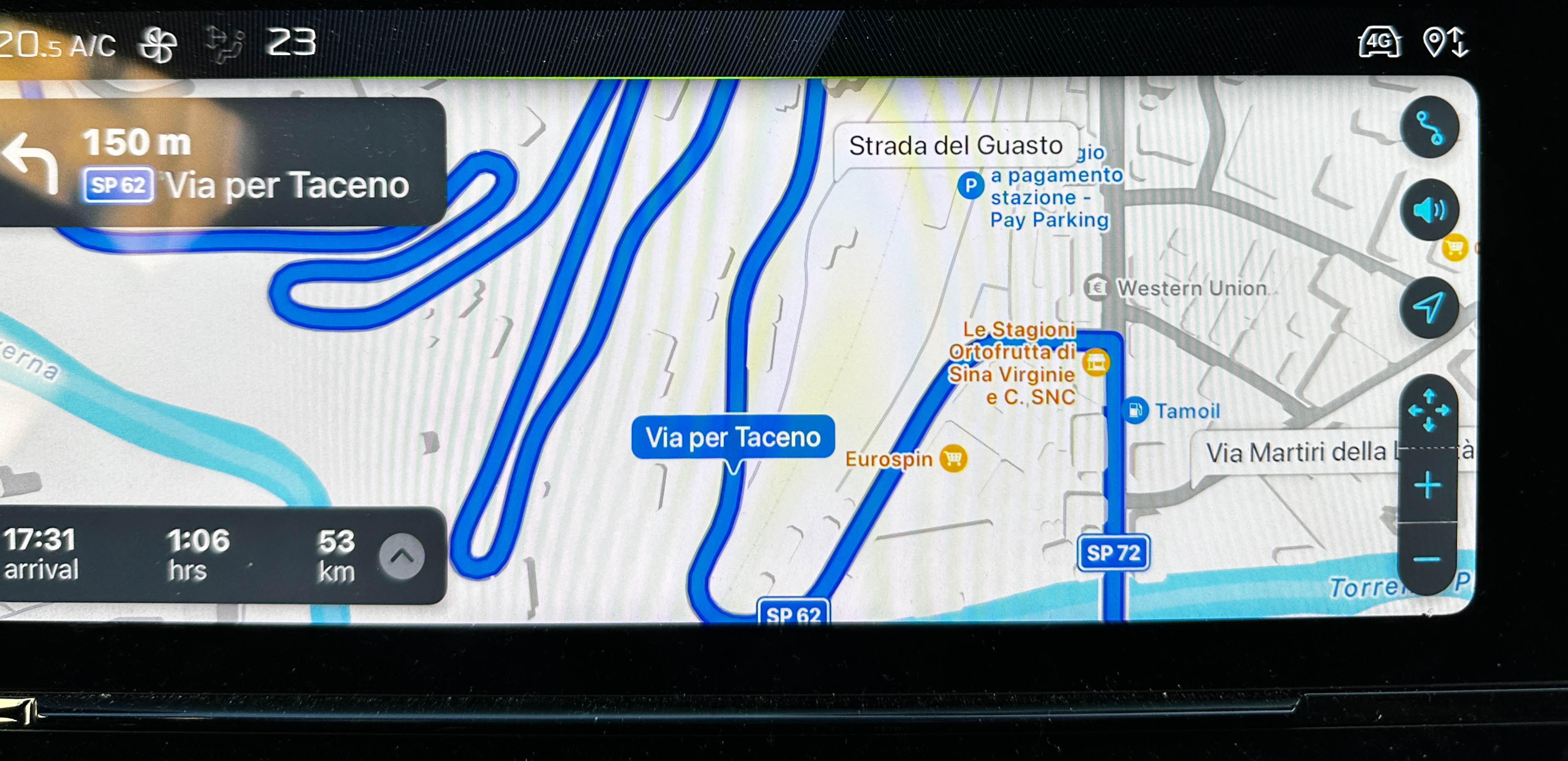 Burt getting there was a trip once again, just because Lake Como is surrounding by scraggy tall mountains, and the roads were never built for traffic of today. They were built for walking and for donkeys. Nevertheless, trucks, cars of different sizes, bicycles, motorcycles, and whatever moves compete for space on the same road, sometimes at the same time. That makes rounding tight hairpin curves more than just a little challenging (scary), especially for us tourists from the flat Midwest of the U.S. who definitely are not used to this! A glance at our GPS gives an indication of the kinds of routes we are attempting to navigate. As we tried to get out of Varenna today, our GPS routed us to a particularly challenging route and finally toward a tight curve bordered by concrete brick walls and through a concrete Roman arch that was so small that our car could.not.fit.through! We have a Peugeot, not a Fiat, not a Smart car, not a Twingo. Recognizing the impossibility of getting through the arch, we had to figure out how to turn around with no available space, and retrace the same twirly route that brought us down there in the first place. Once again, we prayed for safety and for no other vehicles attempting to come down from the opposite way. There.was.no.more.room.on.this.road!!!! Dad did beautifully, thank God, and we definitely did thank God!