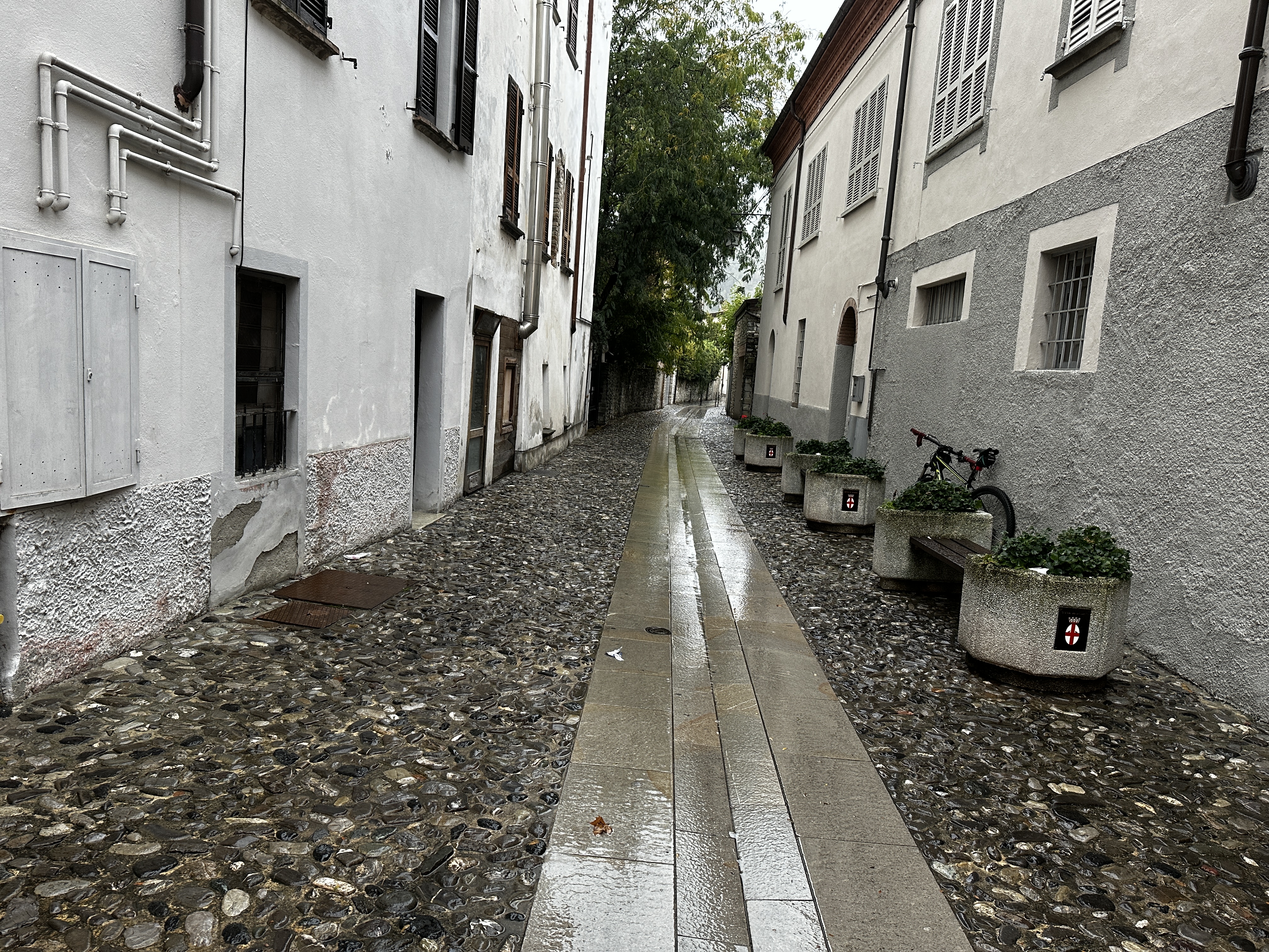 Speaking of regional food, I love polenta and anything with chestnuts. Corn and chestnuts are local in Veneto, Emilia-Romagna, Piemonte, and Lombardia. I got a small piece of roasted polenta during our food tasting tour in Venice. Our fantastic hosts in Lombardy made us a polenta dish because they knew I had not yet found polenta in the restaurants. Those same hosts roasted chestnuts for us, also. But, otherwise, we have not found chestnut dishes in any of the restaurants that we have frequented. And yet…scattered disrespectfully on the ground beneath some chestnut trees in town center of Bobbio were lots of chestnuts! WHY? WHY are people not serving these yummy foods in local restaurants?!?!?! I’m going to look for some tomorrow, and if I don’t find polenta and/or chestnut dishes, my next big hope is Tuscany. I KNOW they grow and are eaten there—at least, they were when I lived there so long ago! I remember going chestnut gathering with nonna, my Mom.