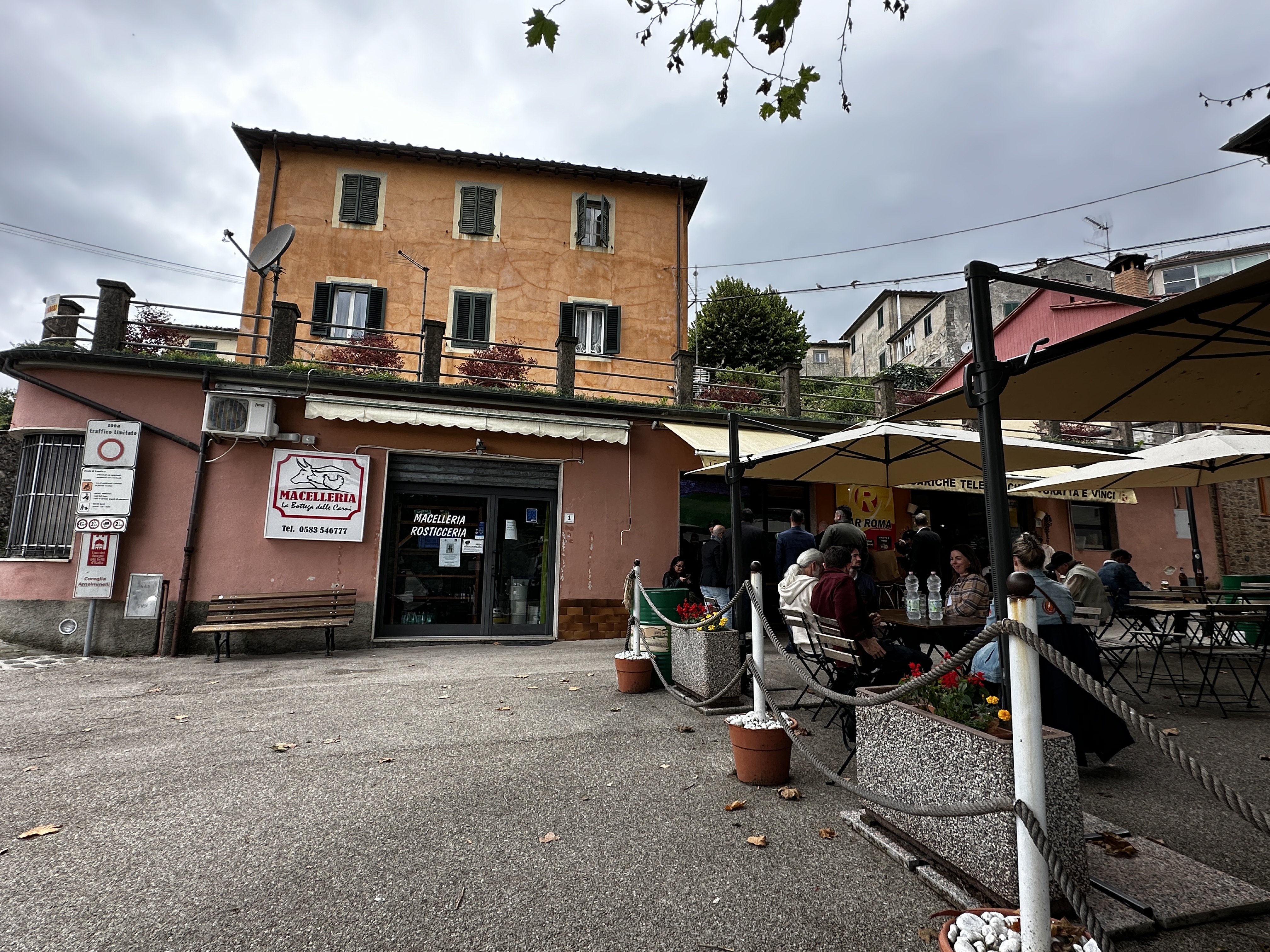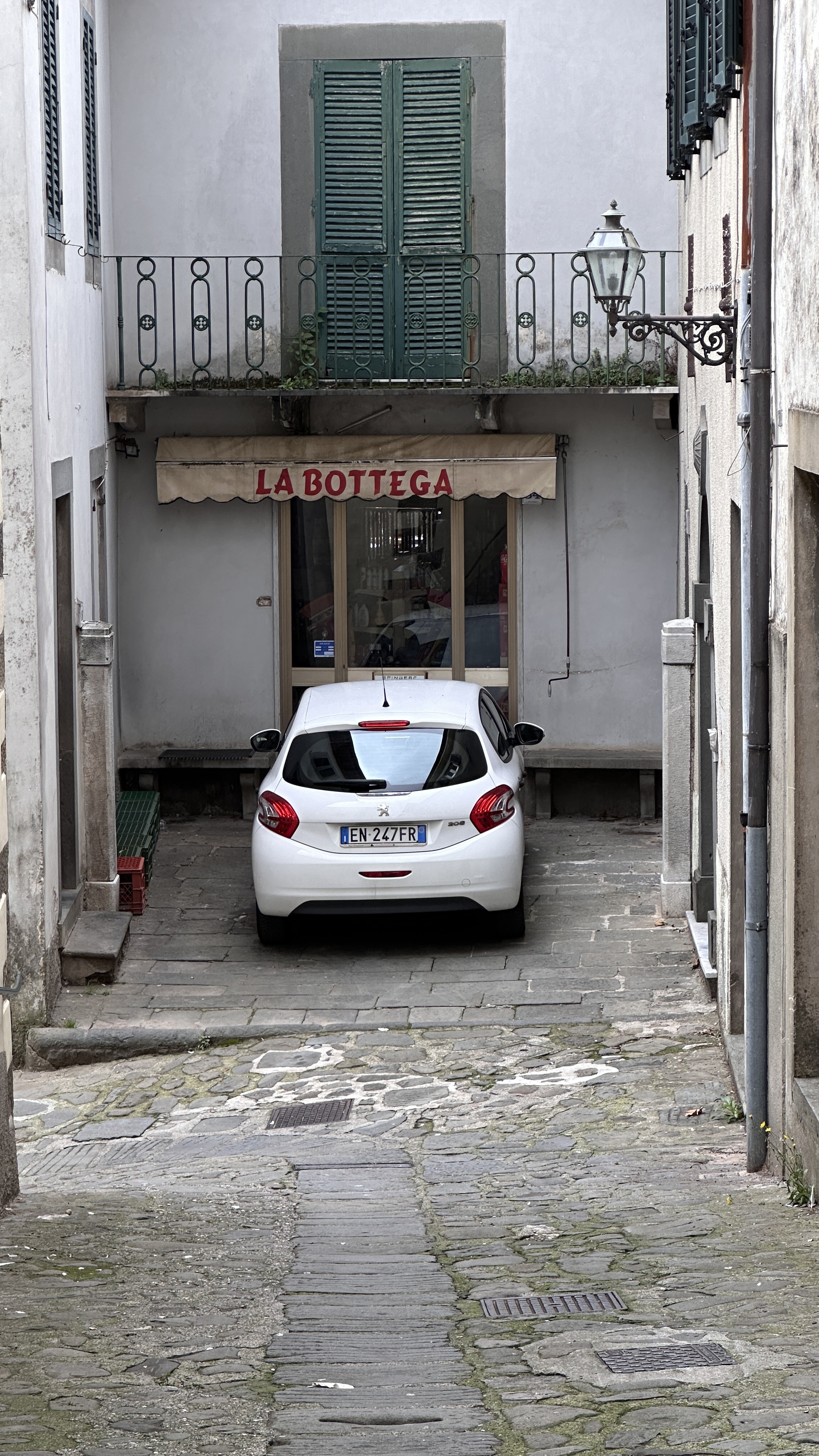 October 6, 2024–Today started out with a bit of uncertainly because it is Sunday, and we did not know what time Mass would be. People in town told us yesterday that they believed it would be at 11 o’clock; however, they did not seem 100% certain, and we could not readily verify the Mass time/s on the internet. We decided to go to the Church in Coreglia before 10:30, just in case. Thus, we got to the Piazza with the Church, and the parking spots were already all filled. As Dad tried to park the car somewhere should a space be found, I walked downhill a little bit toward the Fort. That’s when I met a kind and friendly man in one of he house courtyards, and he referred me to an older gentleman walking uphill toward the Church. “This man will know everything and everyone, maybe,” he said, and called him over to us. This older gentleman immediately said, “Yes, I know Angelo Carzoli! He was my friend! We worked together! He was married to a tiny, pretty, elegant woman from Tiglio who was a very good seamstress”! I said, “yes, those were my father and my mother! We lived in the Fort.” “Yes”, he replied, “your mother was a very talented seamstress! She had lots of people going to her for sewing. She had lots of work! There is also a woman who is still living in town here who said she used to go to the Fort to learn how to sew from your mother. Maybe she will be at Mass. If she is, I will introduce her to you.” “You are correct! My mother taught three younger women how to sew. I remember Luana, Violetta, and I could not remember the name of the third. But they might remember me because we used to have processions around the Fort with the tall wooden bed posts from the furnishings therein,…”. “Her name is Mirella, we were just talking about the Forte recently! Your father and I worked together in the Gesso Figurines factory in town! Your father did not stay there long, though, because I don’t think that working with Figurines was his forte. Then, your father and someone he knew from Fornaci (my father’s birthplace) started a baking/breadmaking shop here in town. That shop is not there any longer. It did not last long. But it was right there in the smaller piazza where there is now a butcher shop and Bar Roma right next door. But, I don’t know what happened with that enterprise. Then, your father went looking for work, always looking for work, always traveling from one place to the other, didn’t stay long at any one place, maybe a day or so, and then he would move on.” “Yes, he would often tell me even in the States when I asked where he was going. ‘A zonzo,’ he would reply”. “A zonzo, yes, that’s exactly what he would do,” the gentleman laughed. “But one day, he went somewhere, maybe La Spezia (not far from Carrara, where his mother, my grandmother was born), and he did not return at night. It appears that he travelled without the necessary identification documents, and he was detained by the local police overnight. It took some calls to and from the Coreglia Comune to verify the authorities that he should be released and permitted to return home.” Then, this kind gentleman walked with us up and down steep hills to tell me about the names of who lived in what house, where the old school where both he and I went (it is now the Museum of Gesso and Immigration), about Signora Bice, my teacher and his, as well, at some point (she is now deceased, but her daughter is still alive, he explained), about the grocery store I used to walk to for my mother when she needed something small (the store, Tubo, is still there, and the family still owns/runs it), about the fabric store where my mother and other town seamstresses shopped for sewing materials (it is now sealed behind steel doors), where the Moscardini (my godmother, Tosca’s, and my Aunt Anna’s husband’s family) lived, about “Angelo’s brother and his family” (my Uncle Livio, Aunt Clara, Rosella, Marisa, and Amilcare) who lived a couple of houses from the Forte, “but then they went somewhere, I don’t know where”, where my mother’s good friend Vanda, also a seamstress, lived, and so on. WHAT A FIND! Now, because he used to be vice-mayor of Coreglia for several years, he has contacts in the Comune of Coreglia. He is going to ask for the keys to the Fort so that perhaps we can tour it, and so on! This wonderful gentleman and we are scheduled to have breakfast in the piazza by San Michele Church this Friday morning! I cannot wait! WHHAT A FIND! WHAT A FIND! WHAT A GIFT!