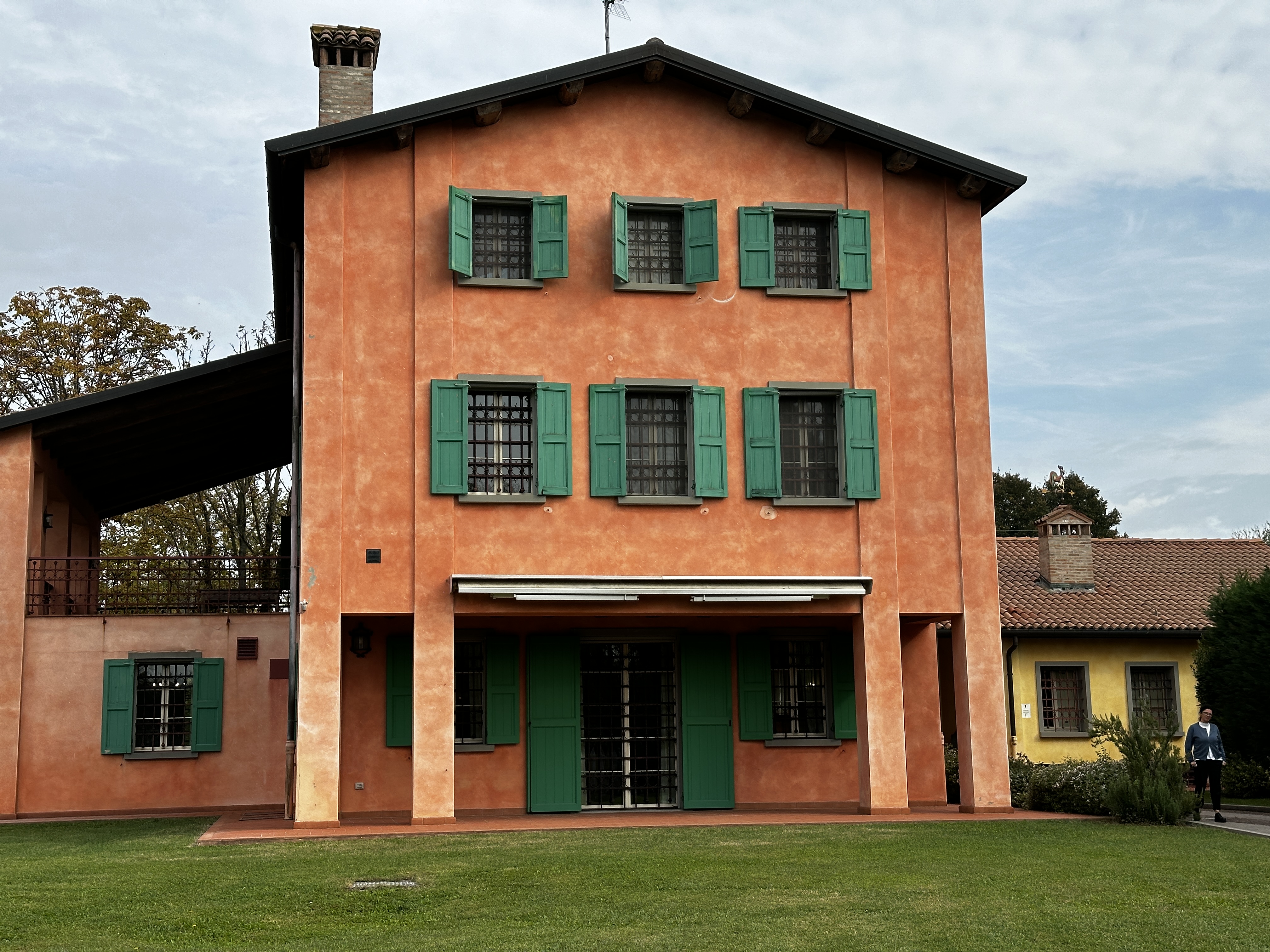 14 October, 2024—Thanks to our resident roosters at this B&B in Castelfranco, Modena, we woke up bright and early this morning in order to have breakfast and drive to the local Caseificio BioReggiano (Parmigiano cheese producer) for a tour. Following the tour, we had a serendipitous find: Luciano Pavarotti’s house in Modena, Italy. The historic center of Modena was next on today’s itinerary, followed by a drive to the historic center of Parma, Modena. Most Parmesan cheeses we find in grocery stores in the U.S. are not DOP. DOP means that the final cheese product has earned the prestigious approval of the DOP certifies that this cheese was produced only in an authorized facility and that everything about each Parmesan cheese wheel has complied with all of the regulations for such certification. This means that even the cow breeding and the foods they eat must conform with DOP standards: example, no antibiotics given to the cows, mixed breeds of cows, organic grasses fed to the cows, respectful humane care given to the cows at all times, and so on. .Additionally, the cheese has to be handled a specific way. It must be aged a minimum of 24 months. The cheese wheel must make specific thumping sounds after being tapped by a mallet when it has reached 12 months,….During the process of Parmesan cheese making, nothing is wasted. So, some of the byproducts are turned into ricotta, some become caciotto, some become packaged cheese foods that are appropriate for young children, and some become grated cheese products…. We tasted differently-aged parmigiano cheese products as well as ricotta. Naturally, a recommended pairing for the cheese was DOP Balsamic Vinegar from Modena, and this particular one had been produced at our B&B by our hosts. As we departed the Farm, we saw a road sign about Pavarotti’s house and museum…. Sure enough, Luciano Pavarotti had lived in his house in Modena for the final four years of his life. That house is now turned into a museum, but we were just happy to see it from the outside. The property and external appearance of the house are beautiful! Large house, good amount of manicured land, and all of this located in a bucolic farm area away from the hustle-bustle of Modena, the city. We could not stay in the province of Modena without visiting Modena city, so we drove to its historic center. Of course, there was a huge Cathedral/Duomo there! This one was a UNESCO site, and it was created in the Romanesque style. There were large animal/sphinx-like/gargoyle-like stone sculptures at the outside entry, and lots of large dark stone structures inside. The Baptistry was separate from the Cathedral but adjacent to it. The bell tower was interesting because to me it looked as if it was leaning, think leaning tower of Pisa, for example. Evidently, Pisa’s tower is not the only one that’s tilting lately! Naturally, all good major city centers must have at least one palazzo (palace), and Modena had a huge Ducal Palace, for example. There were stores, restaurants, and bars at ready access, but…today was Monday, and in Italy, many establishments are closed on Mondays! Additionally, even if they were open today, they might close at 2 or 3. Some restaurants will then reopen at 6 or 7 or 7:30 P.M. for dinner…. So, Modena was a little quiet today. The city surrounding the city center definitely showed its age. After all, Modena has lived through major eras of art, music, and wars…. The other city we could not possibly miss was Parma, as in, Balsamic Vinegar, yes, of course, but also prosciutto di Parma (a ham-like meat that is served raw or cooked) and Parmigiano cheese! Its town center also had a Cathedral, and this one was very pretty inside. Parma is very proud of a talented artist from long ago named Antonio da Correggio. His frescos and artwork could be seen throughout the inside domes and chapels of this Cathedral. It is interesting to see the forms of artwork and construction of these grand edifices over the past centuries. Whereas I thought the Cathedral in Modena had been a bit foreboding, this one was “brighter” all the way around. The activity level in the historic center of Parma was different from what we had just experienced in Modena about an hour-and-a-half earlier. This could simply be due to timing, i.e., perhaps the bars, cafes, and restaurants in Parma had already paused for the afternoon and were now returning for the afternoon and evening…. The houses leading away from the town center were colorful and therefore delightful to view. We are not in the mountains this week, so there was no urgency to return to our B&B before pitch-black dark. Thus, we waited until 7 P.M. for dinner (and that’s another thing in Italy so far: it is advisable to call ahead and reserve a table for dinner) at a local trattoria that had been recommended to us for its reasonably-priced regional foods. I had tortellini with porcini mushrooms, and Dad had a cut steak. We shared roast potatoes (I always look for these and order them whenever they’re available). The real star of tonight’s meal, however, at least, for me, was a pastry that we shared: custard-filled, beautiful, large, tasty, and crisply-flakey Mille-feuilles treat!