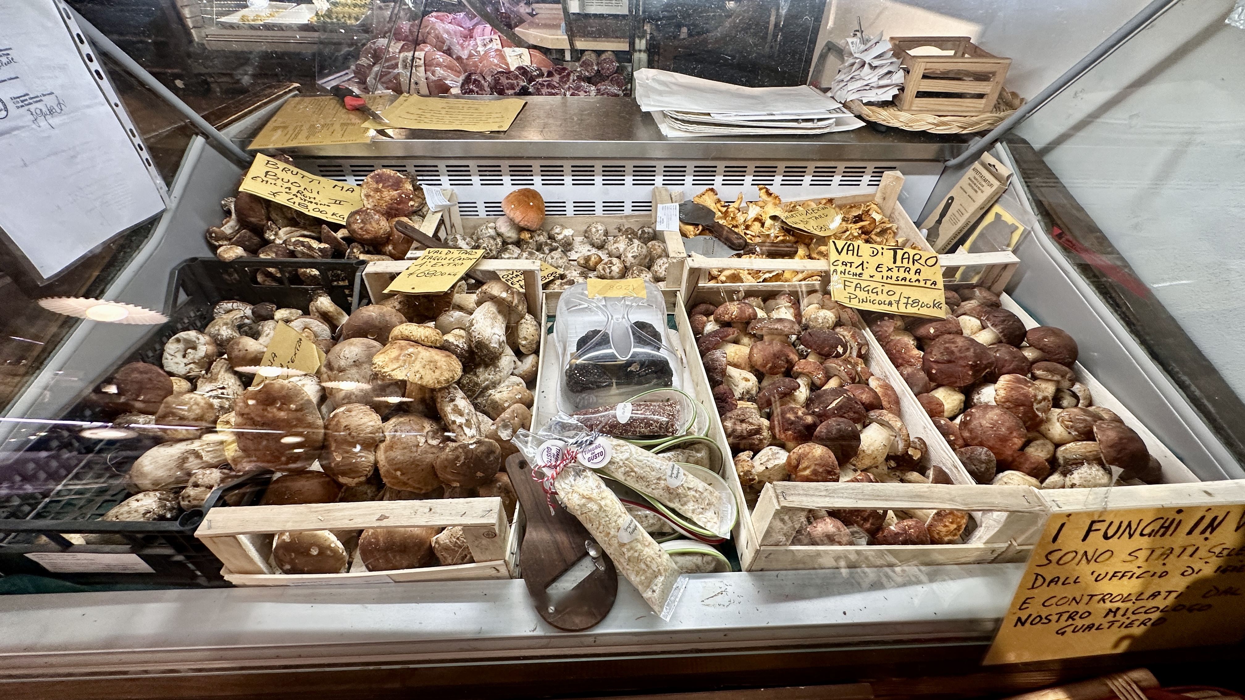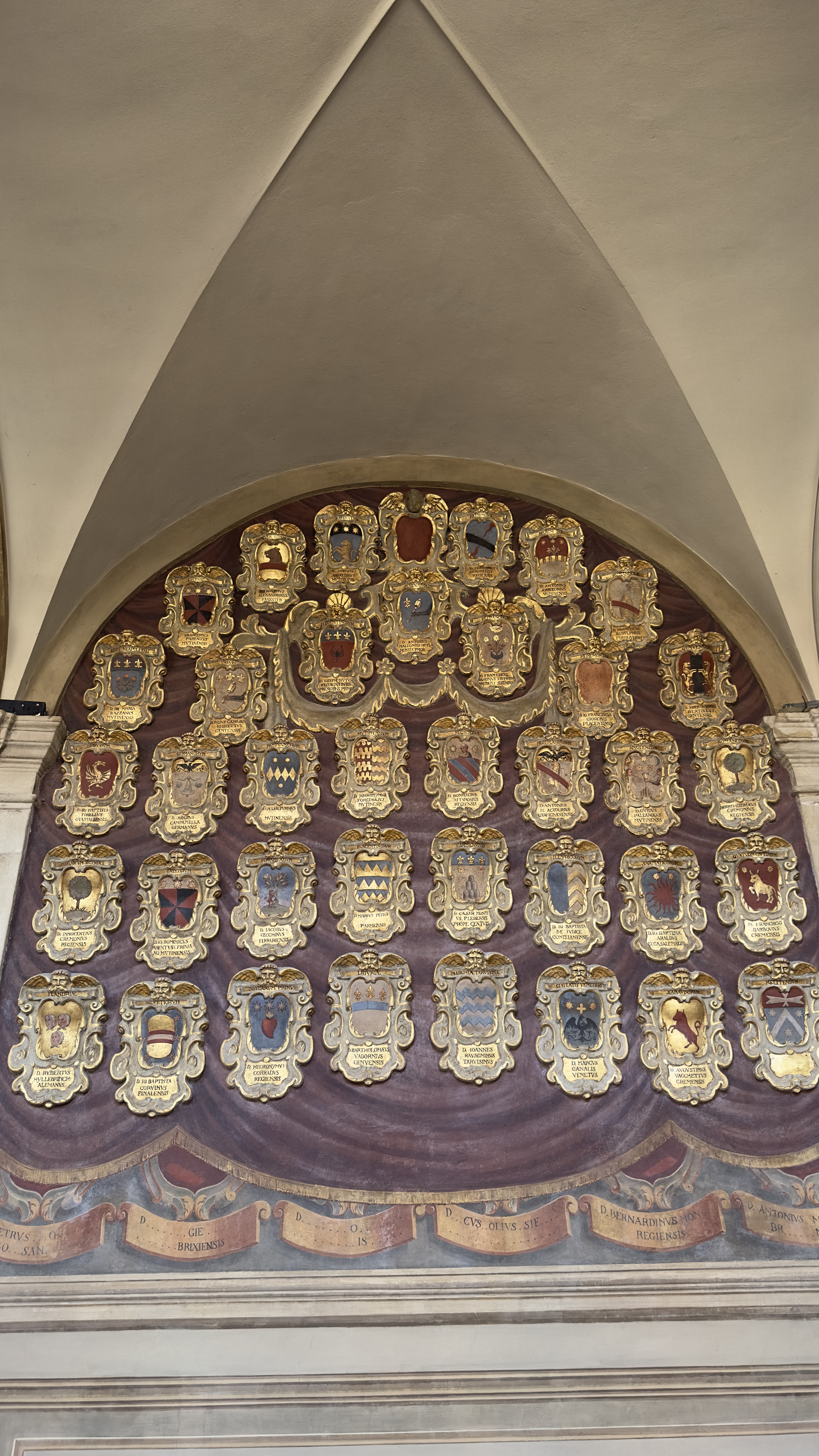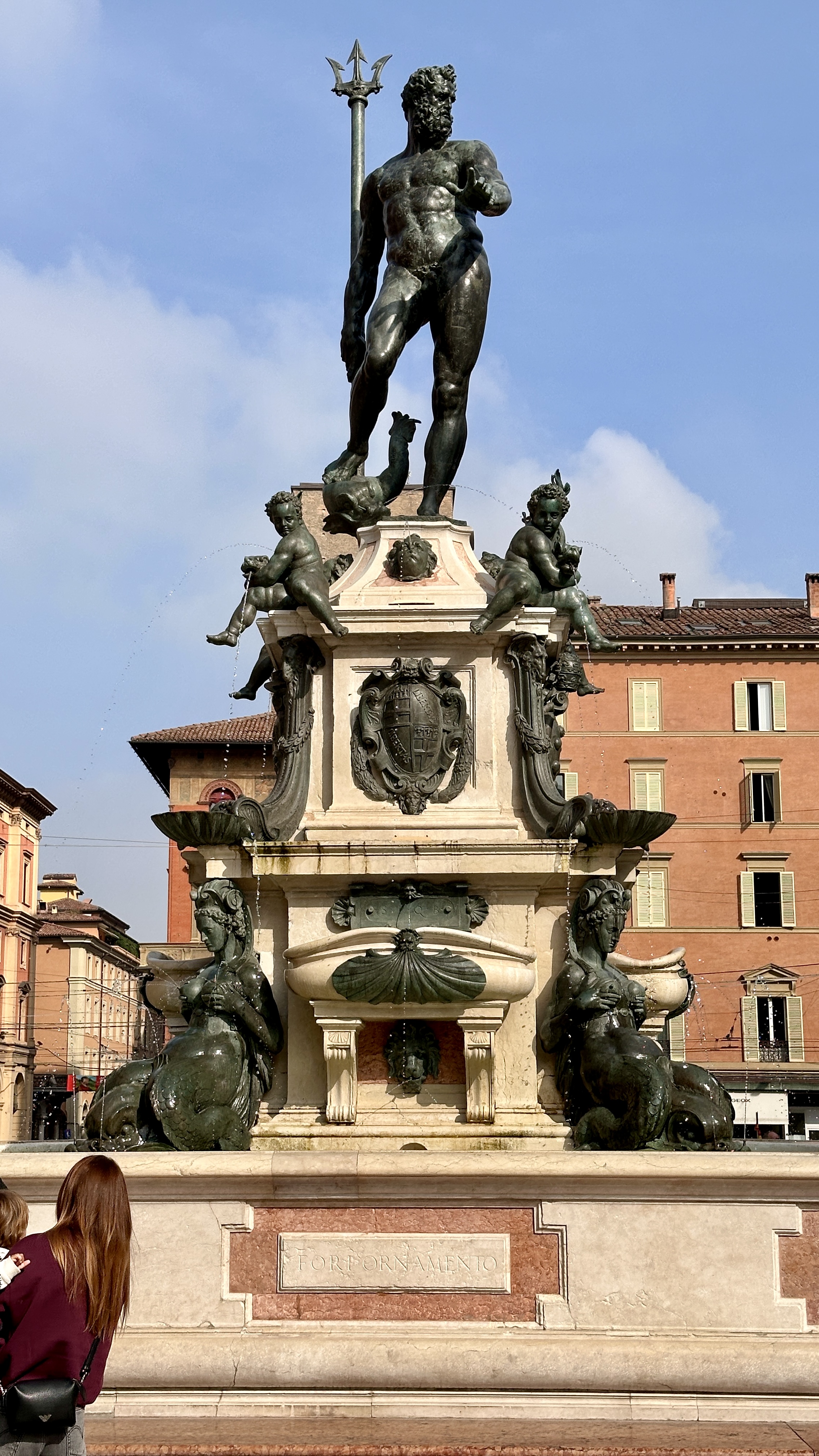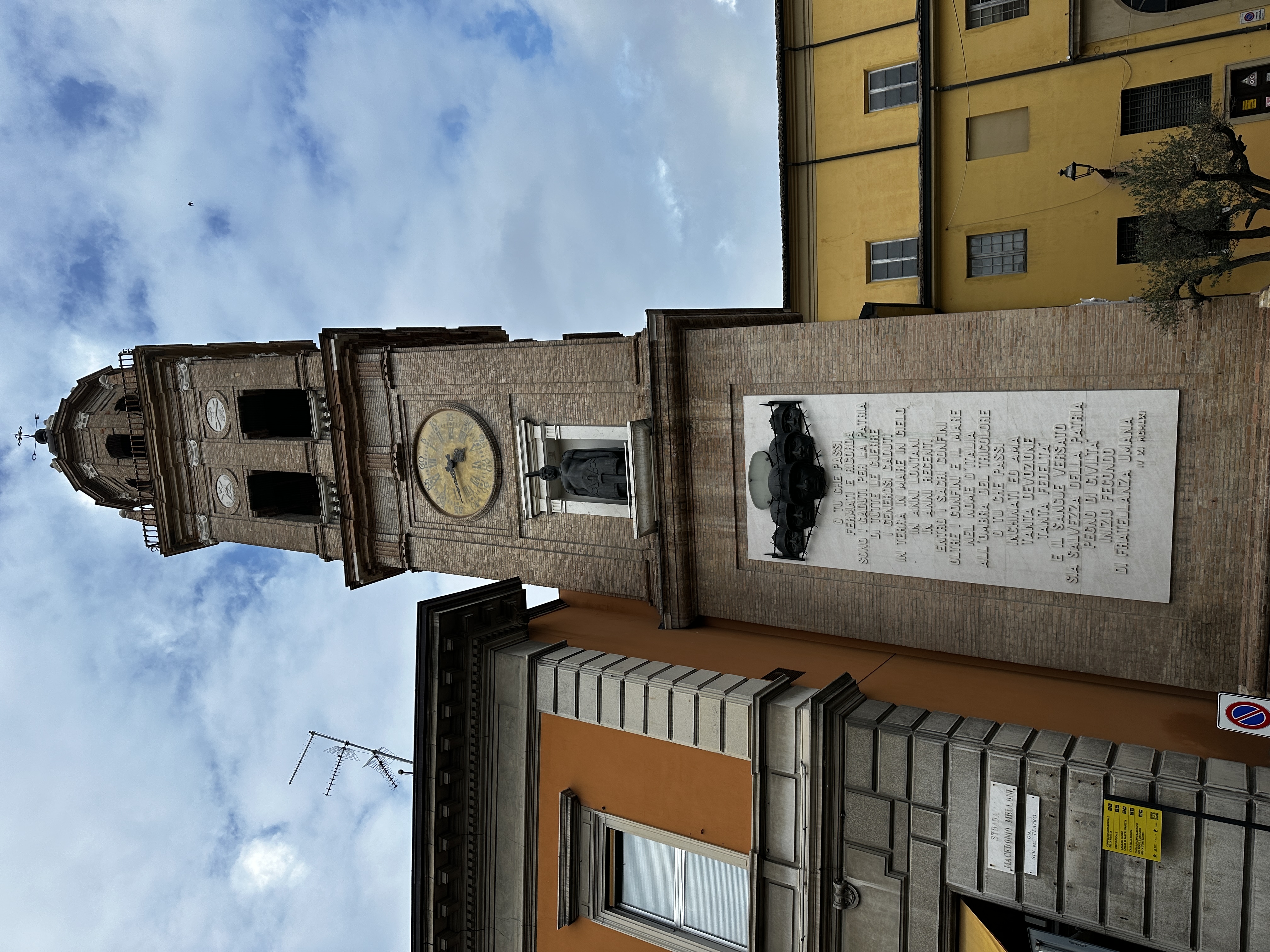 15 October 2024–Today was Bologna Day! Bologna is in the province of Modena, which is in the region of Emilia-Romagna, in Italy. What a wonderful visit this turned out to be! Bologna is not unlike many other major cities we’ve visited thus far: One cannot drive through the City Historic Center, and parking, even in the outskirts, is challenging to say the least. There are these zones in Italy thus far that are marked ZTLs. When one sees that symbol on street signs, and they come up rather suddenly, sometimes, it means that the public is forbidden from driving in that area unless they are residents of that area or have received some kind of legal authorization. Violations result in fines. At the advice of the internet and even some hosts, we drove to a parking lot outside of city center and hopped onto a city bus to ride to a Piazza close to all of the historic sites. Parking was free if we rode the bus! That was a pleasant surprise. Bologna has so much history, art, music, culture, and so on! We managed to visit the Piazza del Nettuno, the Basilica of San Petronio, the Torri di Bologna, the Basilica di Santo Stefano and the Seven Churches, the Clock Tower (Torre dell’Orologio), the Archiginnasio and Teatro Anatomico, and the Quadrilatero (Medieval Market). We stopped for coffee mid-morning in the Piazza Maggiore where Chefs from Alto Adige (by the Dolomites) were gathering, ate Lasagne Bolognese, oven roasted potatoes, and tiigelle at the Osteria Quadrilatero, and finished the day closer to our B&B in Castelfranco at the Cremeria Ca’ Ranuzza. So, we could not miss noticing and admiring a huge dominant sculptured Fountain of Neptune! This art piece was finished in 1566! The Basilica of San Petroneo is an incredible edifice! The most striking treasure that it displayed today, from my opinion, is “The Man in the Shroud” sculpture. This is the result of rigorous scientific analysis of the image of the person on the Shroud of Turin and a faithful attempt at creating a visible three-dimensional life-sized sculpture of that same man! Think of it: Are we seeing an image of what Jesus looked like following His crucifixion and in the tomb? Phenomenal! The second exhibit of note in this Basilica is the “meridian.” People in the Middle Ages were studying the planets, the sun, the rotation of bodies in outer space, and so on, such that an astronomer was able to draw a line to study and show his scientific theories about the above on the floor of this Basilica in 1657! To date, this Meridian is the longest in existence! Not to be missed in the City Center are two concrete towers within close proximity to one another. One is much taller than the other, and the shorter one appears as if it might fall over any day—it is LEANING! The two towers are behind cordoned areas right now, undergoing restauration. The Basilica of Santo Stefano is comprised of seven smaller churches. The overall structure is gray, heavy stone with separate areas/altars, each dedicated to someone else…. There are courtyards on the interior of the overall structure. And there is a museum and Cappella Della Benda. Benda is the part of Mary’s clothing that held her hair back and that was stained by Jesus’ wounds during the Crucifixion. I don’t know that we actually saw that particular exhibit, not knowing exactly what we were seeing. But…I did see an image of Mary as a Baby, to whom the Modenese people have particular devotion. People here have been so giving and kind throughout this trip! Today, the attendant in the Gift Shop of the Museum and the Cappella Della Benda gave me several holy cards of Mary as a Baby free just because I had inquired about that exhibit (which I had seen elsewhere before). We saw the Torre dell’Orologio (Clock Tower), a tall tower with a giant clock on its face, located in the main piazza in Bologna center. The Archiginnasio and Teatro Anatomico, as well as the Stabat Mater Libreria, are historical remnants from the original University of Bologna. This university dates back to 1088, but really took flight with student attendance in the 1200s. Nevertheless, it continued to operate as a university until 1805 when Napoleon arrived. Napoleon closed this original phase of the University and sanctioned a new one. This original campus is a remnant of the oldest university in the world that has been functioning as such without interruption. Prominently displayed are coats of arms of all of the families who were represented by students at this University over time. The Quadrilatero is a market that sells and displays fresh local fruits/vegetables/meats (prosciutto, mortadella…), and other edible items along some side streets in the center of Bologna’s historic areas. Bars, bakeries/bread shops, and restaurants of all types typically serve the foods a merchant sells right in front of their store. We selected an interesting osteria for our day’s main meal, with Dad looking specifically for lasagne bolognese, and I looking for green lasagne. We were not finding green lasagne on the menu anywhere, so I settled hoping to at least sample authentic lasagne bolognese in Bologna. The waiter quickly advised that ALL lasagne bolognese is green, always! The lasagne bolognese is made of GREEN pasta—green from the spinach mixed into the pasta dough! Our B&B host explained to me that lasagne bolognese is always/only green, always has to have five layers of pasta, no ricotta, no mozzarella, bechamel, and beef and pork ragout. Each bite should contain all five layers of the pasta, bechamel, and ragout. If one desires, a bit of parmigiano reggiano is fine lightly sprinkled on top. It was DELICIOUS! The bread side dish was not composed of any bread we have had so far in Italy. Rather, it came in the form of warm-to-hot round, one-inch thick 3” x 3” discs with a flour stamped on the top. These, we learned, are called tigelle! Delicious! (Later, we saw little sandwiches served in tigelle. What a 