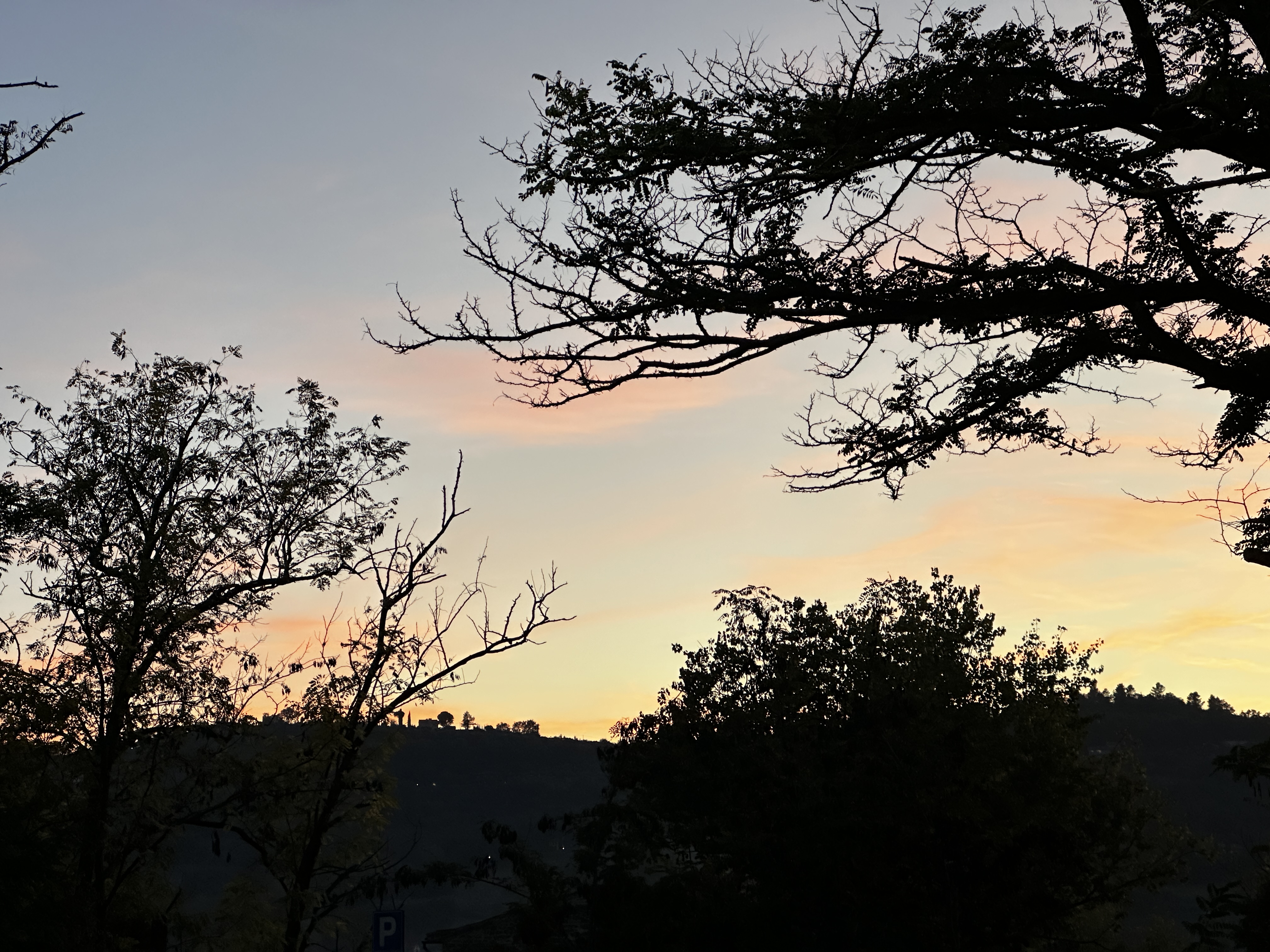 2 November 2024–Dad Has Been Sprung! Today began with a little bit of apprehension, lots of hope, acceptance, and commitment. After a National Holliday yesterday, doctors were back on duty today at the Nuovo Ospedale di San Giovanni Battista in Foligno, Umbria, Italy. We hoped that John would be discharged today, because we knew that a discharge on Sunday would be unlikely, and we did not know how John’s labs would turn out this morning. The labs were still not perfect, but after a discussion, efforts at persuasion, with both the doctor and the nurse, and after the doctor’s consultation with the specialist, we agreed that Dad would be discharged today with some different meds, a precautionary diet, and follow-up instructions upon his return to the U.S. I am 100% convinced that we’ve had some hard-working and vigilant Guardian Angels throughout this trip. I have seen so many people and events that have occurred when things sometimes felt hopeless but yet they have managed to miraculously turn things around. Although I don’t know how to do it very well, I cannot underestimate the power of prayer! Anywho, we immediately went for a quick lunch nearby and travelled to Bevigna, a quaint little medieval town just about a ten-minute drive from the hospital. This town was not perched up on a hill, so there was very little uphill/downhill walking—just the right amount for someone who just got out of the hospital and for his spouse who hates to walk uphill anywhere/anytime. We visited the Church of San Francesco in Bevigna, and we enjoyed watching children of different ages racing (running) through the crowded and narrow town center streets! In the piazza, there was a large “market” going on, in this case, it was composed of goods that individuals had created by hand, such as embroidery, and so on, as well as necklaces…. It was reminiscent to me of a large outdoor craft fair selling beautiful handmade products. Evening came quickly today, but the sunset was beautiful once again. We shopped for some diet-conforming food items before heading to Vesuvius restaurant for some real food after a seemingly long hiatus. John had a beef filet, which he said was the best meat that he has had in Italy so far. I had Gnocchi all Sagrantino, potato gnocchi in the local wine (Sagrantino) sauce. VERY interesting, and I am delighted to add these to my repertoire of gnocchi-any-anytime-I-can-possibly-find-them. It is so very good to have my hubby back home with me tonight!