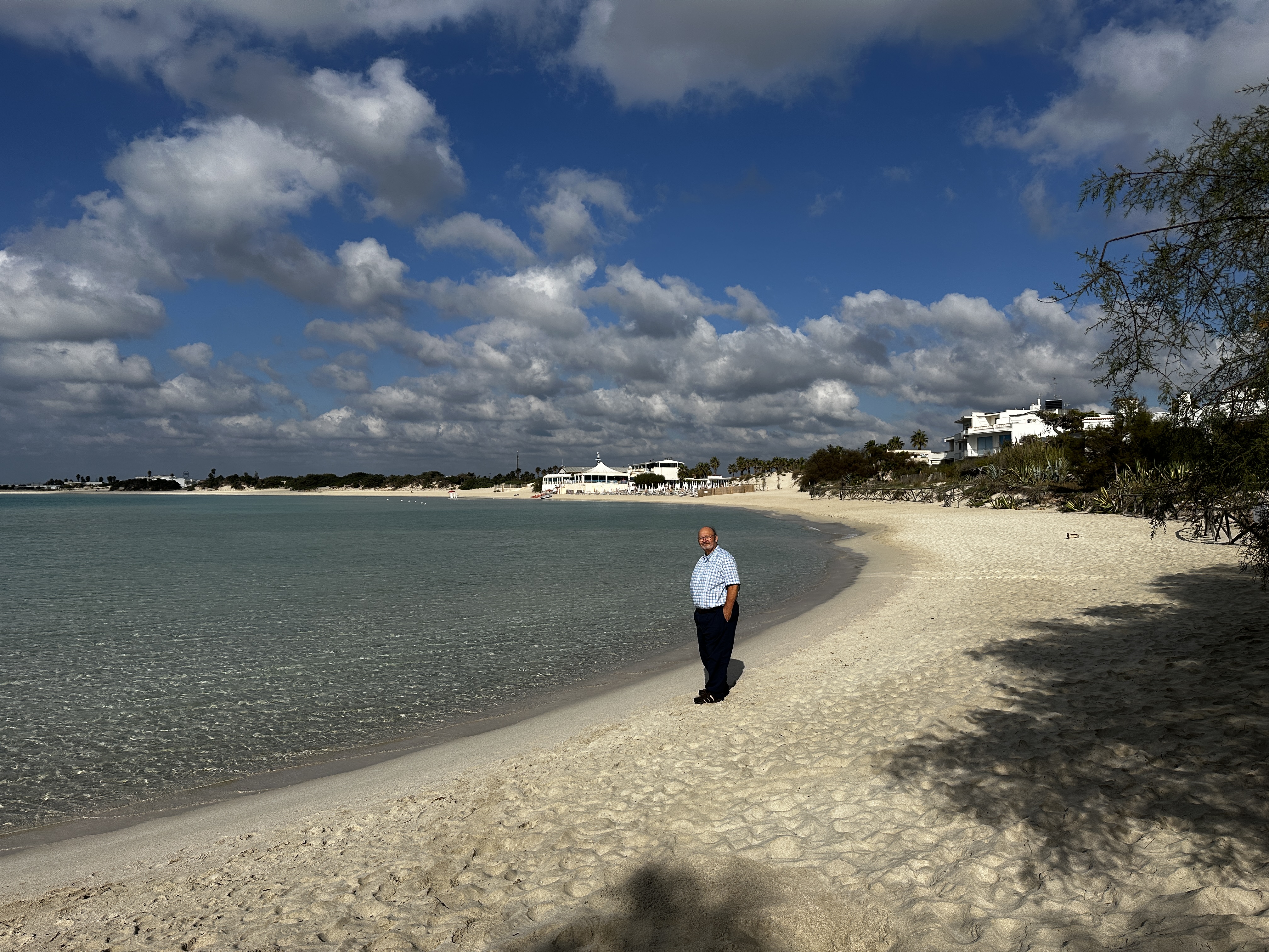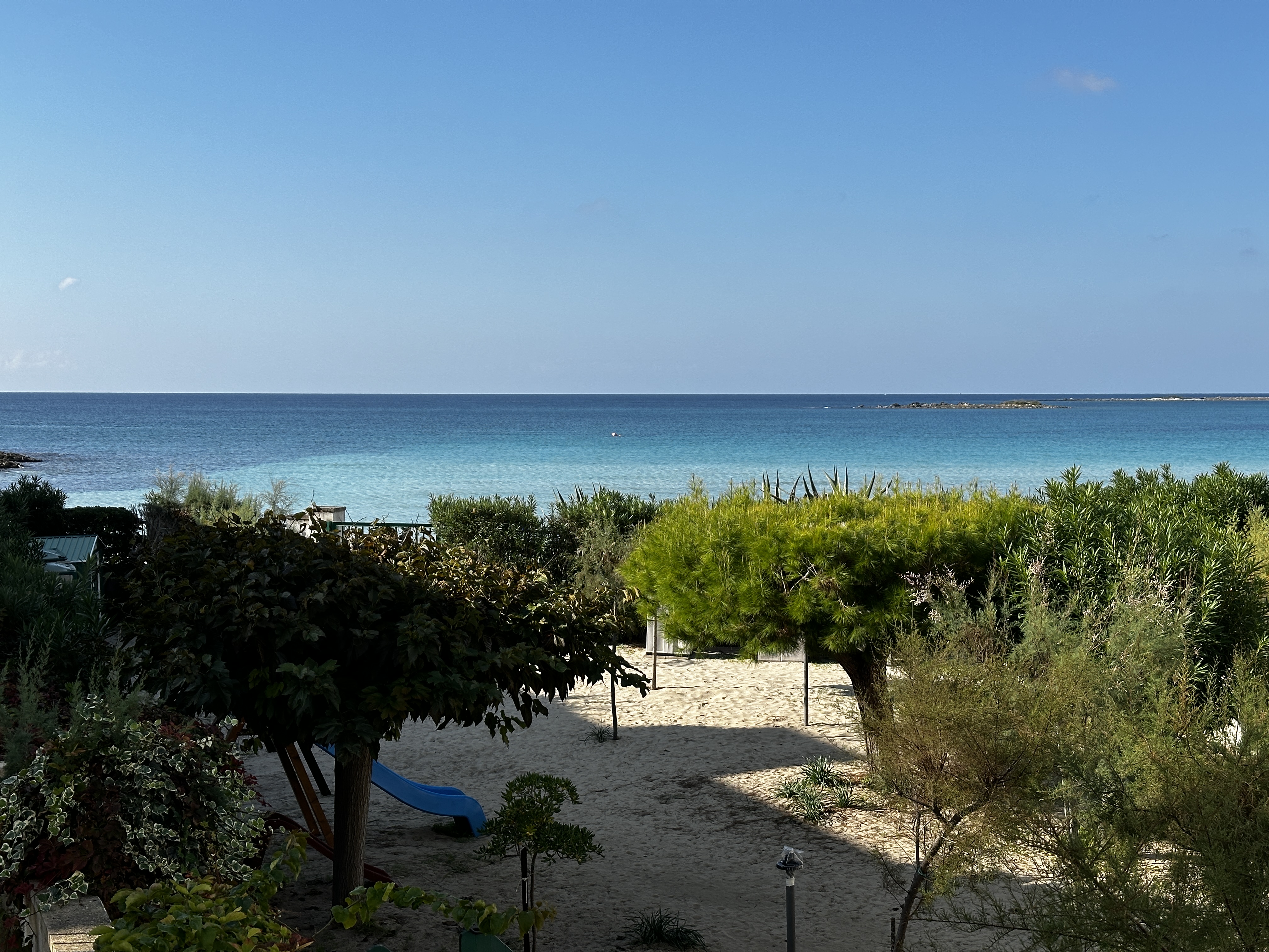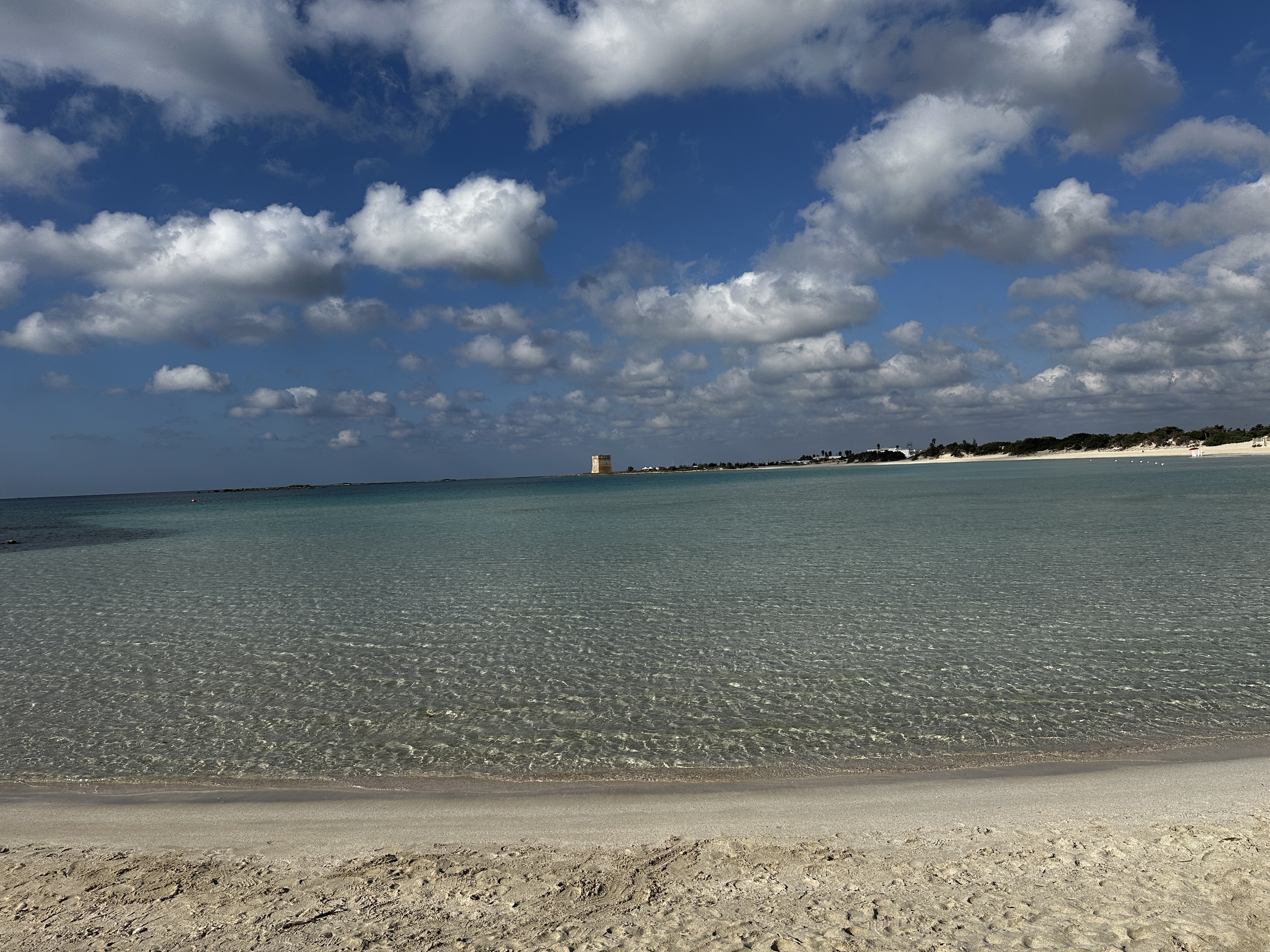 5 November 2024: We are at Le Palme delle Dune in Porto Cesareo, Puglia, Italy for a few days. The beach is just four doors down from our unit, and this is the Ionian Sea. Additionally, and best of all, my cousin Paola Carzoli lives in Porto Cesareo, so after two attempts, we are finally able to visit with each other today! We walked on the beach in the morning to the cafe nearby for breakfast. There is sand, not stone, and the sand reminds me of the beaches in Naples, Florida. It is not white, but it is light, it is not fluffy nor gypsum-based, but it is grainy like the sand at Naples Beach or perhaps even Vanderbilt Beach in Florida. The water is extremely calm. Paola tells me that it is always that way because of the many protective inlets along this coast. It is clear and light blue, with a very shallow sandy entry. One could see by the furnishings on the beach, and some of the decorations at the bar/cafe, for example, that this area would be a prime tourist attraction in-season. At this time of year, although it was about 70F and sunny, most of the B&Bs have closed, and only the hotels remain open. The little bar/restaurant on the beach stays open year-round, I am told. Today, we only spent a little bit of time on the beach because we plan to visit with my cousin this afternoon. Tomorrow, perhaps, we’ll spend a little b it more time here. Unfortunately, my cousin’s husband did not feel well today and could not visit with us. We hope to see him, if even for a coffee, before we leave this region. However, my cousin Paola picked us up and drove to her house. Getting there is a circuitous route, but it really is only about a five-minute drive away. It is a beautiful house, with a tropical garden, some turtles, a parrot named Ugo and that talks, and a small dog named Kevin. The parrot calls for Paola or Papa or Damiano when he feels ignored, has not seen them for awhile, or when he wants a little bit of whatever they are having for dinner. It’s hysterical! Kevin is on Viagra because of the oxygen saturation issues that he is having. And Paola? Well, Paola made a homemade meal for us, including lasagne with homemade pasta (so light and delicious, one could really taste the difference between this homemade pasta and the store-bought kind), a meat stew, and peas (I thought of Logan, who absolutely loves peas). Dessert was a pasticciotto, one of the specialties in Puglia. The best part was an opportunity to spend some time together and to begin to get to know one another better, even though both of us are about the same age (about a year-and-a-half apart, and I am the older one, of course), and even though the last times we actually saw each other was perhaps in 1968-ish. Dad does not speak Italian, and Paola does not speak English, so once again, Dad demonstrated his usual kind patience that he has shown in Italy this entire trip. But, Paola and I thoroughly enjoyed this visit and appreciate this incredible opportunity. Perhaps we will be able to share a coffee, this time including Damiano, so that we could at least have met by the time that we leave Italy. He is my cousin-in-law, after all!