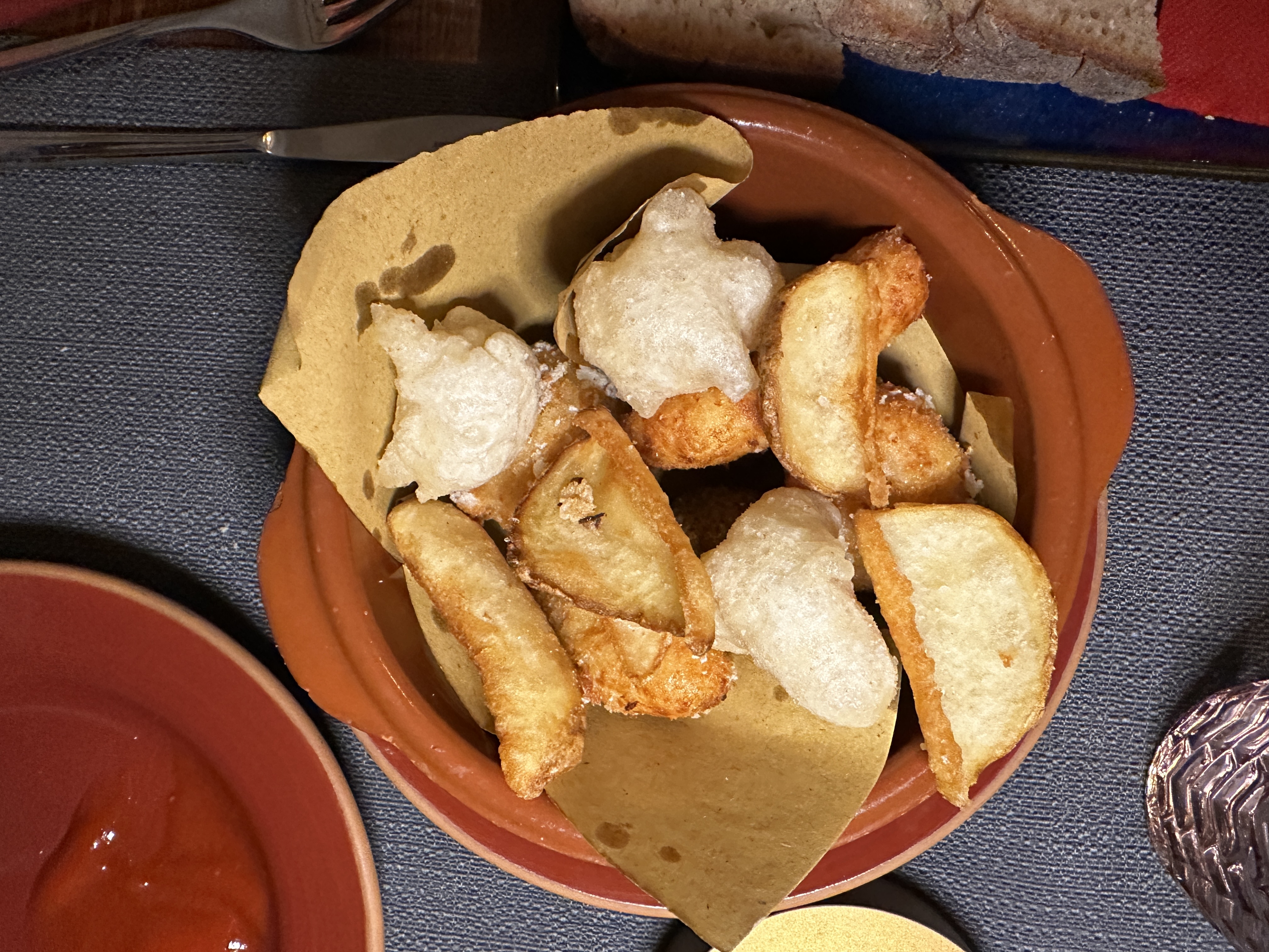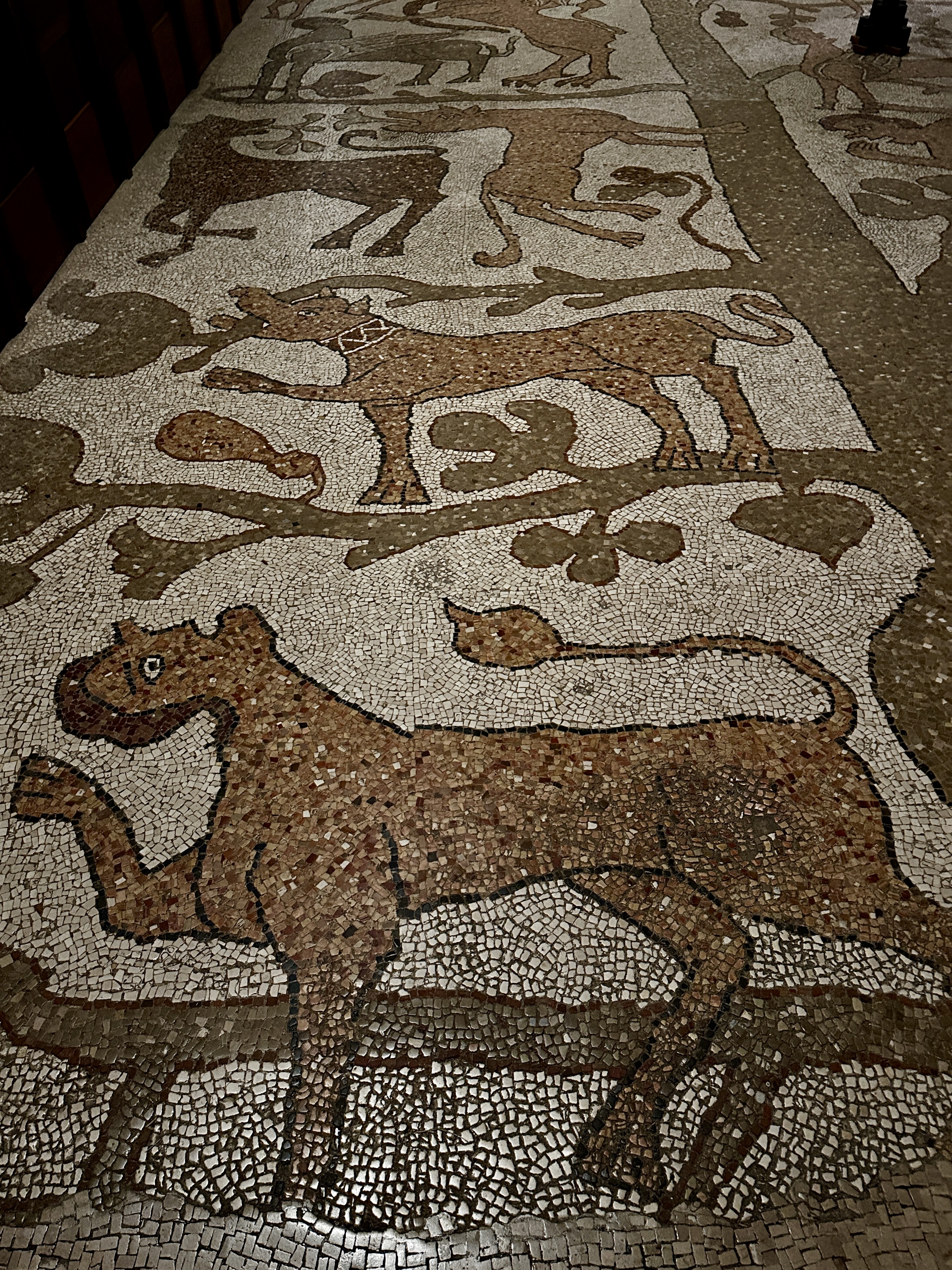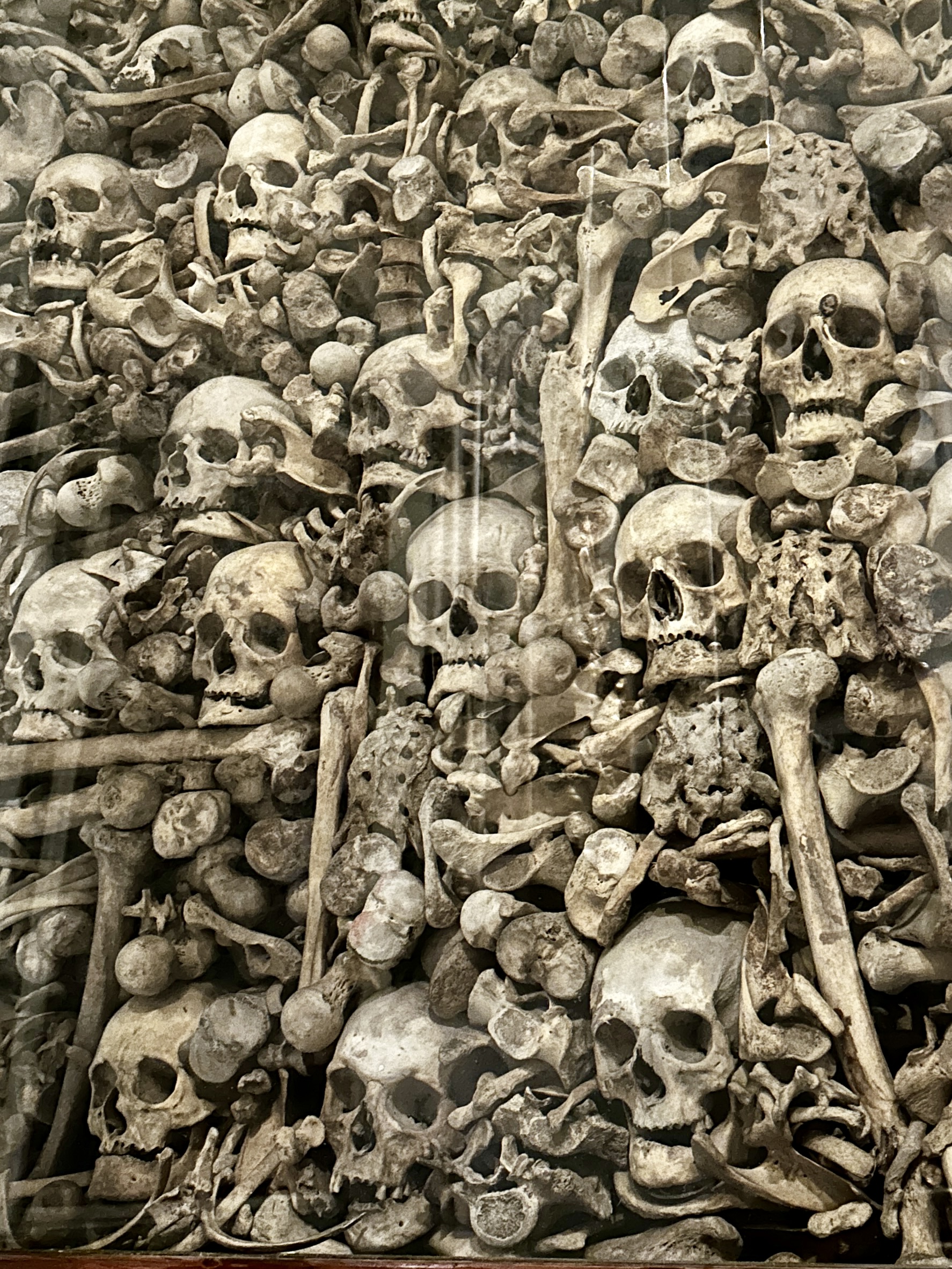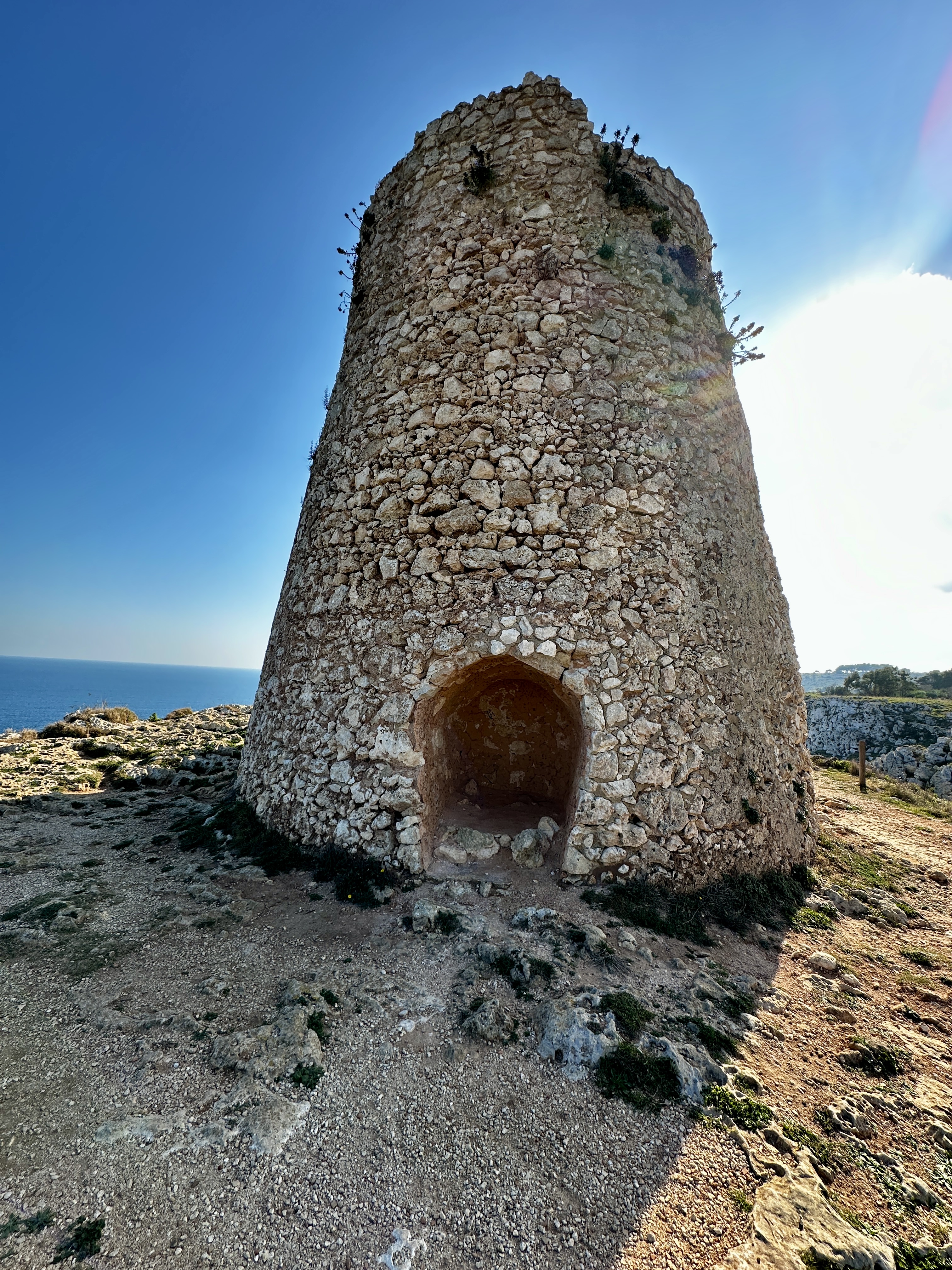 7 November 2024: Drive Along the Eastern Heel of the Italian Salento Peninsula: Lecce, Puglia to Leuca, Puglia—It was a beautiful sunny and warm day in Porto Cesareo this morning when we awoke, so we decided to tour the heel part of Italy, although we only got through the eastern part before it became dark and we turned back toward “home.” Nevertheless, it was a beautiful journey, with some stunning scenery, especially from Otranto to Leuca. But, Porto Cesareo is on the western coast of the Italian heel, on the Ionian Sea. We had to cross the Italian peninsula in order to access the Adriatic, western, side. The first city we came upon was Lecce. We stopped at a McDonald’s there and were greeted by two pooches in the McCafe line. There was another larger pooch politely accompanying its Human inside the store at a table. Yes, dogs are treated quite humanely throughout Italy. Of course, they were all leashed. Opposite the McDonald’s was the first movie theater I’ve seen in a long time, bordered by a Mexican Restaurant (the first one I’ve seen in Italy thus far), and other examples of Western influence. The rest of Lecce seems to be pretty large, with huge imposing concrete-looking structures, such as Churches, plenty of stores and shops, a university, music schools, palazzos, soccer paraphernalia stand/colors (red and yellow) and so on. The city seems to be pretty old, with some buildings showing their age. Vineyards and olive groves pepper the area just outside of the town center sections. We traveled to Otranto, Puglia on the eastern coast/Adriatic Sea side of the Italian Peninsula. However, we decided to travel on and return later in the day when the Cathedral would reopen at 3:00 P.M. We headed toward the southern tip of the heel, where the Adriatic and Ionian Seas join and split (the Adriatic on the East side and the Ionian on the west coast of the heel). The city we sought there was Leuca. The road along the Adriatic coast between Otranto and Leuca was stunning! Lots of rocky cliffs, light-colored, framing the azure Adriatic Sea. Plenty of palms, cacti, flowers, and other shrubs create a lovely landscape. Gardens along the “hill”sides gave an expanded definition of what a rock garden might look like. We passed several rocky structures on the hillsides that looked like rocky upside-down thimbles—much larger, of course. And, we passed several “torri”, towers. These were used as watch towers to protect against unwanted invaders by sea many years ago. We passed several small towns with restaurants, bars, cafes, B&Bs, villas, churches, and hotels. Most of the structures were white, not unlike Santorini, Ostuni, Mykonos, Alberobello—because the white color served the same purpose in these towns that can become quite warm, I suppose, in summertime. The whit coloring absorbs less heat from the sun during the summer. Interspersed among all of that beautiful whiteness, however, are yellows, oranges, and so on. Leuca was once considered to be the end of the earth that jutted out into the Sea, i.e.., the end of the Italian heel. Thus, there is a tall old lighthouse, and there is an old cathedral, called the Basilica of Santa Maria de Finibus Terrae. I love that name, Santa Maria of the End of the Earth! The sun was thinking about beginning the setting process over the Leuca and the Ionian Sea. It was brilliant as its rays were reflected in the water and formed a shadow over the predominately white Leuca city structures! We drove to Otranto. There, we were greeted by a huge Castle of Otranto, originally serving as a defensive structure against unwanted seafaring enemies. Tonight, it was hosting an art exhibit. But what we wanted to see was the Cathedral of Otranto. Not only does this Cathedral have a phenomenal mosaic that composes the floor of the Cathedral, but it also displays the bones of the 813 Martyrs of Otranto. When the Turks conquered Otranto in 1480, they demanded that the residents convert to Islam rather than to remain as Christians. When the residents declined, they were all killed, including their Archbishop. Men and boys 15 years old and over were killed; and women and children under 15 were sold into servitude. I believe that the 813 Martyrs have now been canonized as Saints. An obelisk and the majestic tall Leuca lighthouse appear to be standing side by side in the Piazza (but they are not side-by-side, of course). It was dark by now, so we dined at a restaurant in Otranto. The antipasto bowl that John and I shared had a mix of regional fried items, such as arancini with rice, eggplant “meatballs”, small curls of over roasted potatoes, and beautiful, scrumptious, I-could-eat-too-many fried bread dough balls. Dad had bombette (little rolls of pork stuffed with cheese and pancetta), and I had, wait-for-it…GNOCCHI Sorrentina.