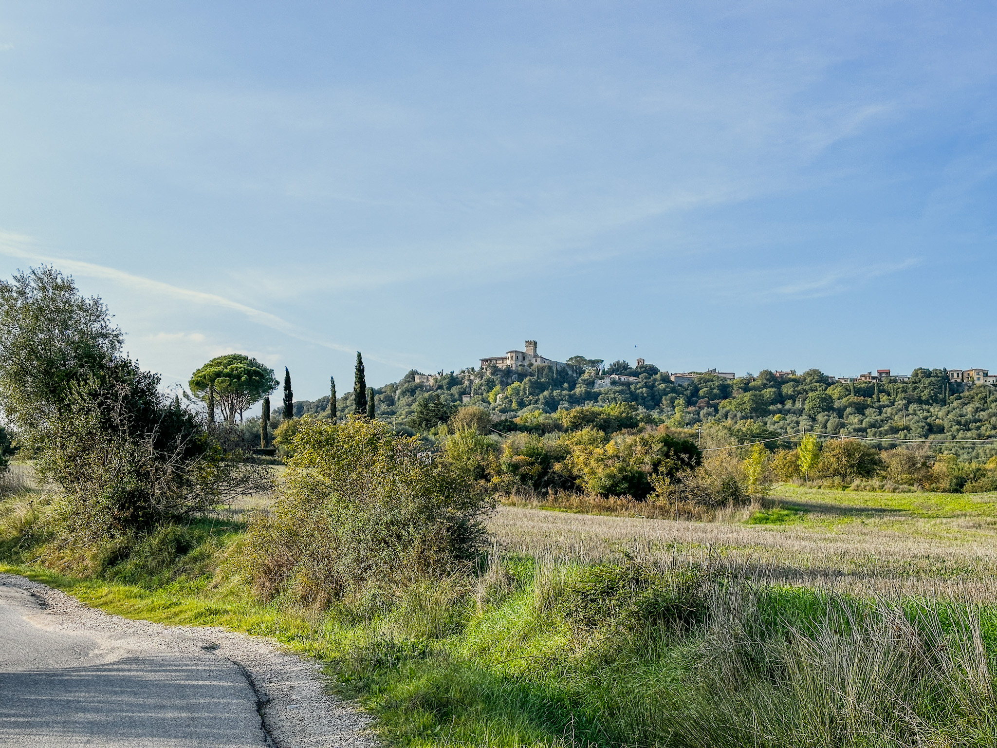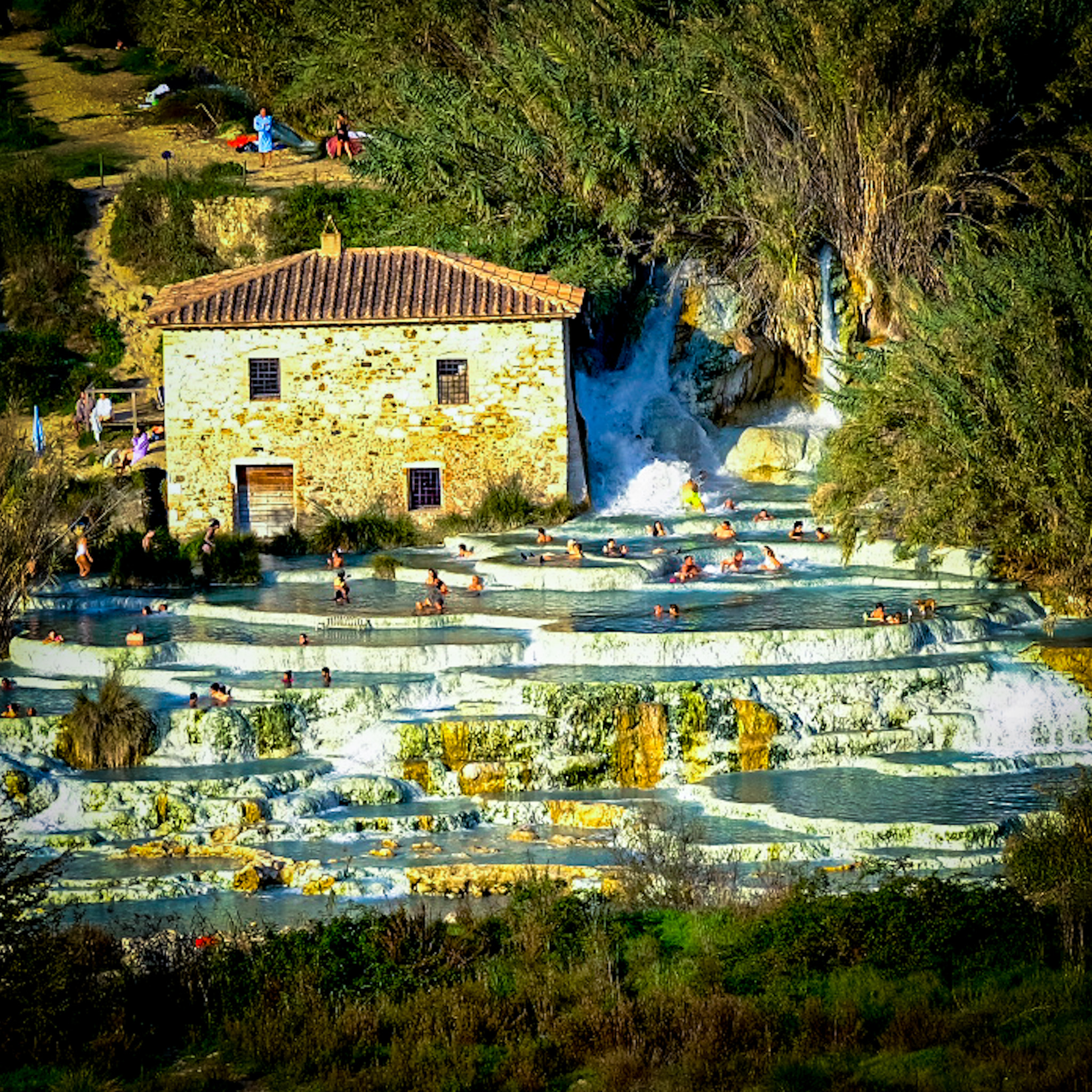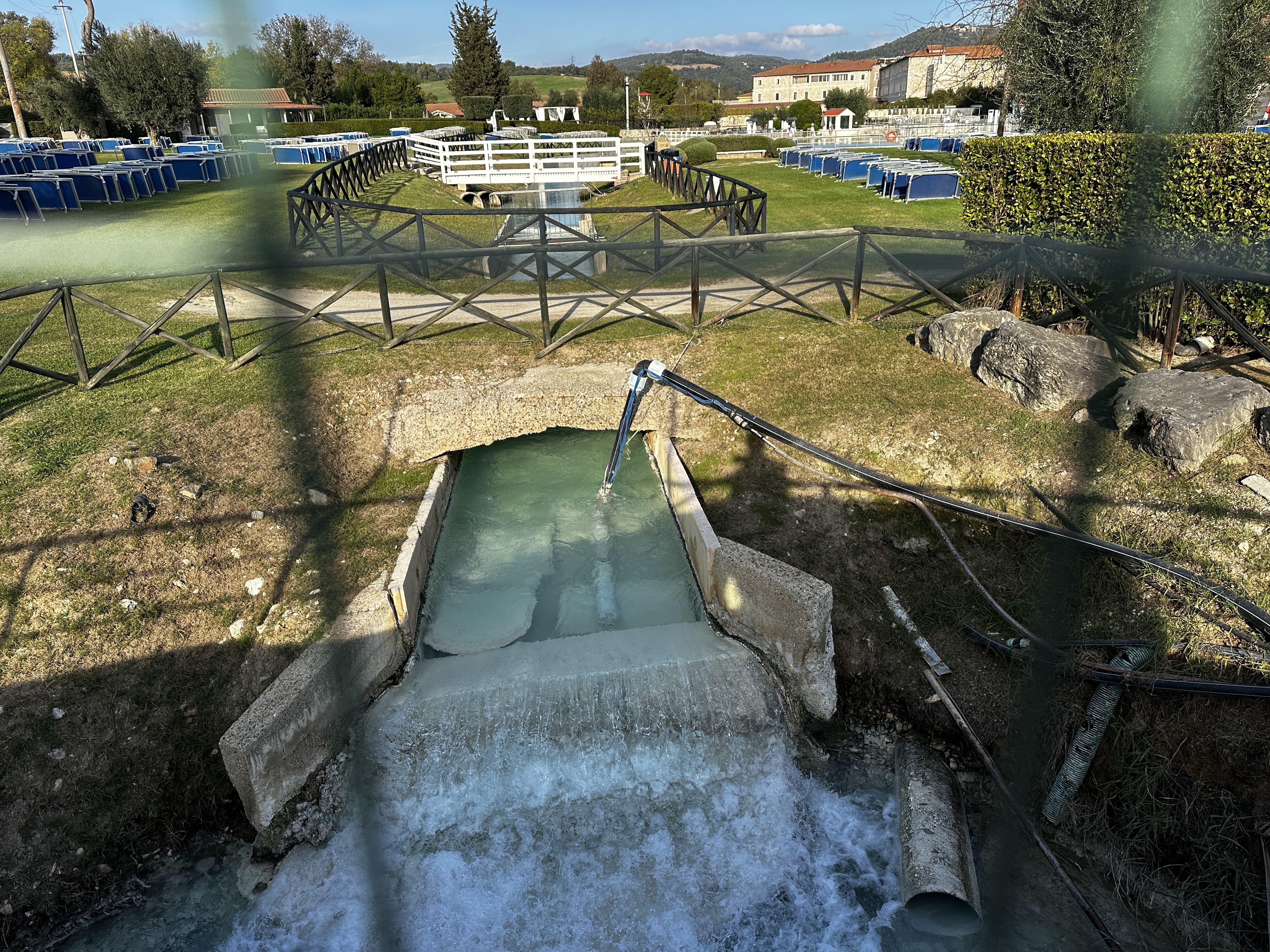 12 November 2024: Driving Day from Frosinone, Lazio to Rome and Terme di Saturnia—We checked out of our last B&B of this magnificent trip to Italy and drove toward our final destination in Rome, Hotel Cristoforo Colombo. However, along the way, we decided to take advantage of the beautiful weather still and see the Terme di Saturnia. I had seen pictures of this thermal springs area and always thought the colors and structure were breathtaking, so before leaving Italy, this was something we would attempt to fit in. On our journey, we saw more and more of one of Dad’s and my favorite trees in Italy: the stone pine. It looks like a tree with a single tall slender trunk and a rather flat canopy of leaves. They seemed to be plentiful on this leg of our journey! The drive to Saturnia meant that we would be entering Tuscany again, this time, the Maremma Toscana region. From Frosinone, it meant a two-hour drive roughly, except…we encountered one accident and one fender bender , which occupied about 40-45 minutes of our time. I do hope that the people involved in the accident are OK…. We got to Tuscany. There, we saw iconic Tuscan scenery, such as hilltop houses/structures surrounded by cypress and stone pine trees. Set in a backdrop of a sunset, I imagine those would be postcard. We did not catch them during sunset, but they were breathtaking in full daylight, as well. The Terme….It turns out that the Terme of Saturnia is actually a pretty busy place, composed of a natural park, a luxury golf course/spa, and a spa with thermal pools. The part that we wanted to see were the Cascade del Mulino (the waterfall of the mill). There is an old water mill where two or three natural thermal springs come together and create several small waterfalls. The force of the water over time has eroded the rocky bed on which they flow. The erosion has resulted in step-like platforms that have since filled with the thermal water in which the public can soak, relax, and heal from several kinds of bodily ailments. This section is free to the public, but we did not find direct access to it right away. We were able to catch some perfect views, however, from a small hilltop lookout point a short distance above and away. In my mind, this is a beautiful natural sight, and I am so grateful that we had a chance to see them in person and that we could capture our own photos to share with all of you. (I don’t think either of us would have gone in had we been able to get that close. I had read about some teeny red worms that naturally live in waters of that type, and even though they are said to be harmless, the thought of sharing soaking space with them just made me squirm). Dinner was at the Hotel’s restaurant on site tonight. Rome is a bit of a crazy city in which to try and drive. We preferred to just stay put and enjoy the luxury of not having to drive for food. I had an awesome appetizer (antipasto) as my main plate plus a shared portion of roasted potatoes. The antipasto was a round of Phillo pastry dough filled with pecorino cheese, with crisp pear slices on top, and a honey-yellow spice delicious sauce beneath it all. John had a porcini and crispy prosciutto (like crumbly bacon) risotto, which he said was very, very good. As we prepare to relax and get some sleep, we are already thinking about the “free” breakfast that is included at this Hotel and that is at the same restaurant where we had our yummy dinner.