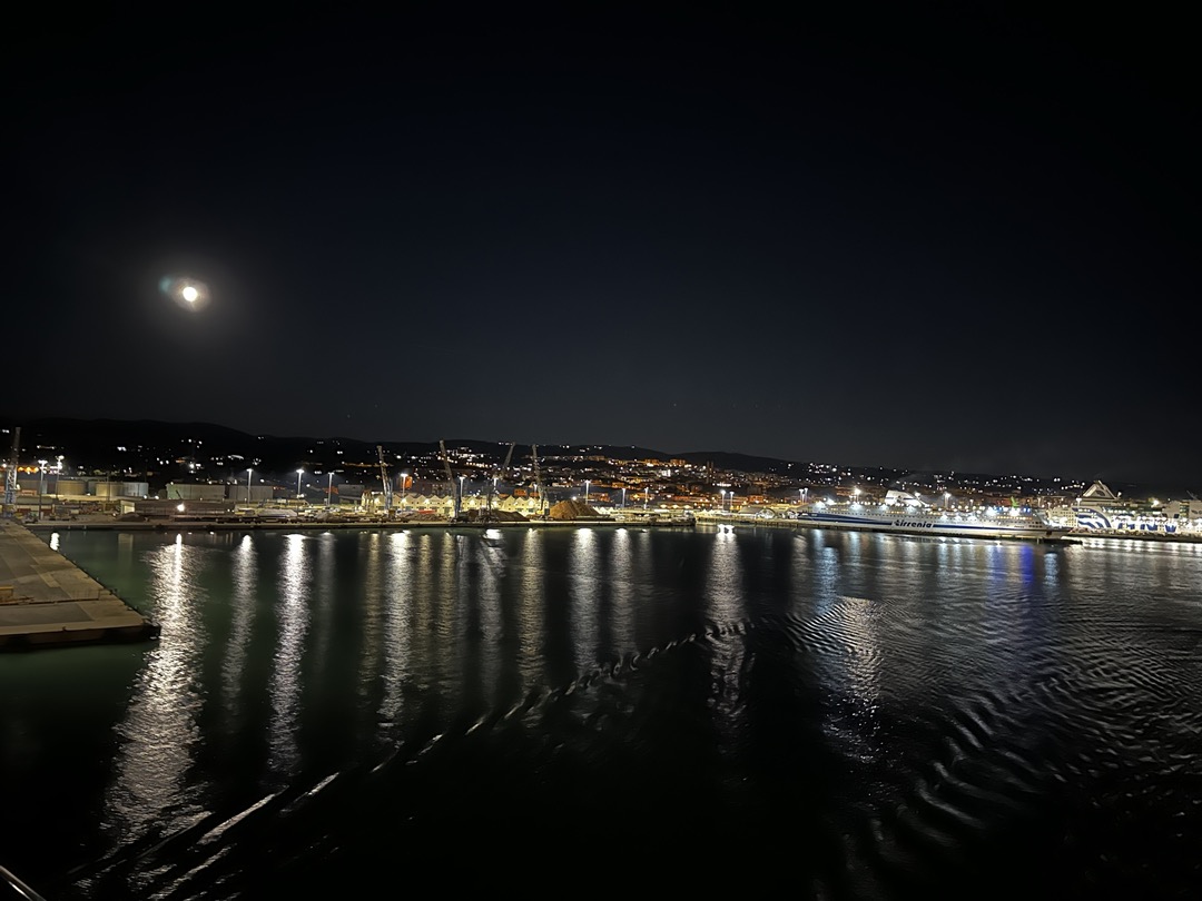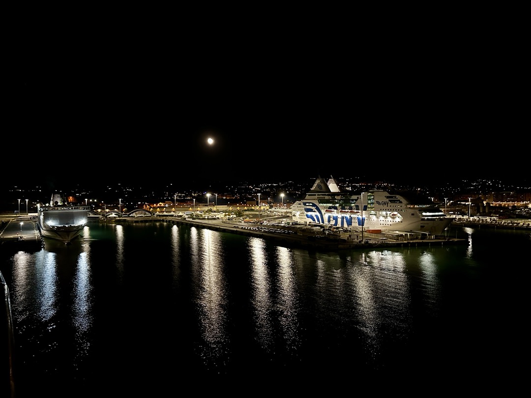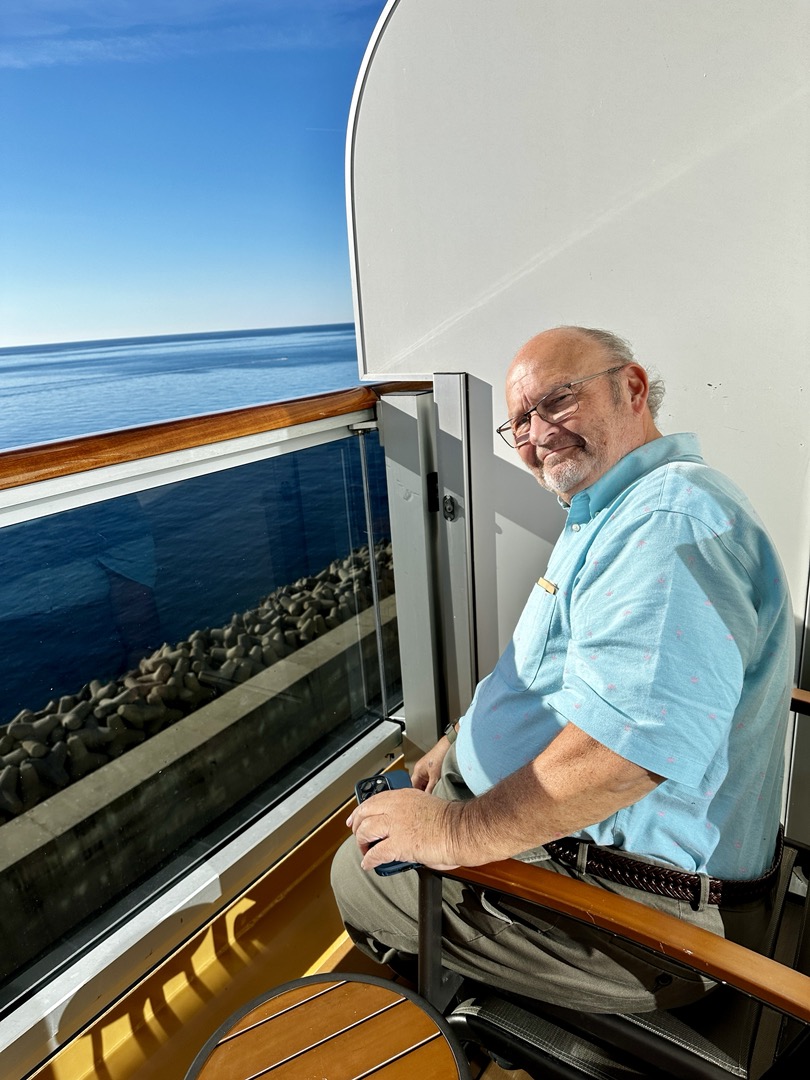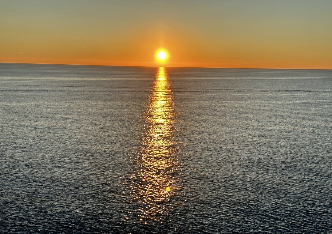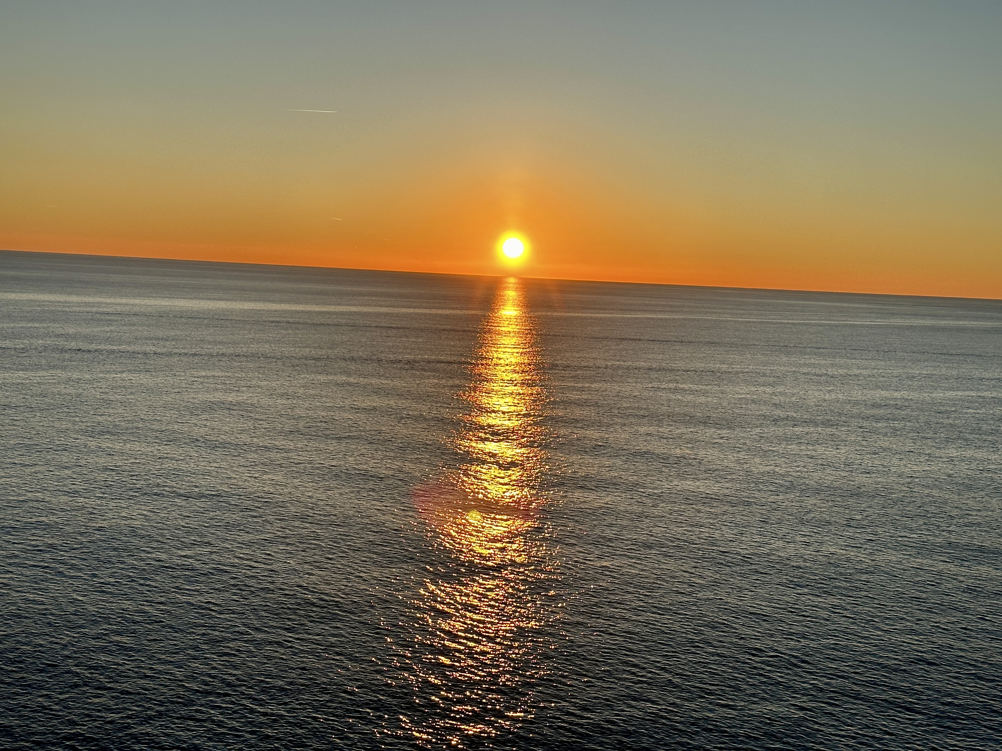 16 November 2024: Sail Away, Civitavecchia, Lazio, Italy—November 16 has arrived, and today we returned our leased car to the dealer close to Fiumicino Airport in Rome, rode the dealer’s shuttle to the Fiumicino Airport, met the Holland America transfer at the Airport, rode to the Civitavecchia Port, and boarded the Neiuw Statendam for a transatlantic repositioning cruise to Fort Lauderdale. The boarding process was seamless, and, we boarded the ship prior to our luggage’s arrival. Thus, we immediately went to the Lido, i..e., the Buffet Dining Room to see what we could see and have our lunch. All of a sudden, I do not need to speak Italian anymore. English seems to be the accepted taken-for-granted language even though there definitely are other nationalities on board. Additionally, the food and beverage options are more familiar to the way that we typically eat at home. There are always Port-to-Table choices, bringing in local favorites for passengers to sample, but one can always choose something else if one prefers. The coffee cups are larger than the espresso Demi-cups, and the cofffee is not as strong—because the coffee in main dining areas is not espresso. Espresso is available in specialty beverage venues on thee ship, and it tends to cost extra. This is not better nor worse by any means, but it is different from how we have lived in Italy for the past two months. This is also flu season, and the particular flu that the ship would rather not have on board is the highly contagious and messy gastroenteritis’s caused by a virus. Thus,, there are hand washing areas by the main dining room, our hands were sanitized when we boarded, and health advisories to wash hands often are printed and distributed in guest room newsletters. At the buffet, no one serves him- or herself, and food is behind glass enclosures. The beverage area is cordoned off to guests, permitting only a Holland America staff member to serve the beverage requested. Tables are washed and disinfected after use. I appreciate this although I am certain that it means extra work for the staff’s long workday/workweek/work contract. The ship is beautiful, our room is comfortable, the weather today was gorgeous, and the sun/sunset were postcard-perfect. Mass was celebrated on board, and I was able to attend it late this afternoon. I love that Masss is offered on board the ship—I do not believe that all other cruise lines do this! I hear that the trend is for cruise lines to try too eliminate such services, but I hope that Holland America will not be among those. Today, for example, Mass was SRO! Boarding was a pivotal activity today, but so was sail away! Watching the ship slowly leave port—and the Italian shore behind was difficult for me. I knew that we would do this, but when the time came, I was a little overtaken by emotion. I did not expect that. I thought I had already dealt with that inevitability well before today. But….My U.S.. home is calling loudly after giving me the privilege/opportunity to spend a beautiful two months in my native land, and my heart is yearning for my family at home, while simultaneously grieving for Friends and Family I must now physically leave behind. Tension….and Reality…..Tomorrow is a sea day. We are sailing through the Strait between Sardinia and Corsica on our way to Cartagena, Spain. Monday is a port day. Typically, we will have internet and phone connectivity on port days, and not on sea days. We look forward to the promise of tomorrow, as I already have a full itinerary planned throughout the day. John is doing well. He is enjoying the opportunity to read, watch some TV, and relish thee warm sun on deck.