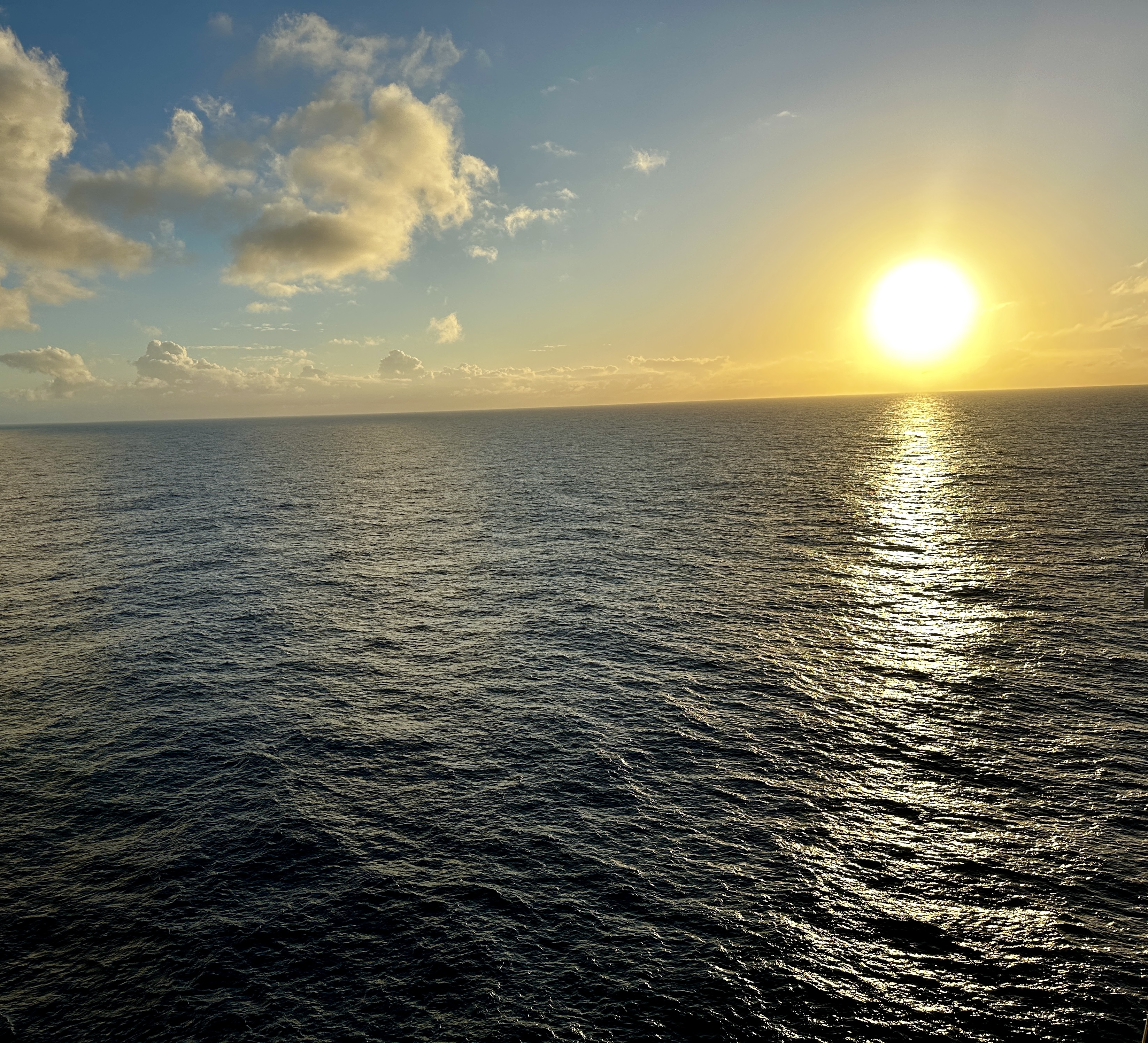 24 to 29 November 2024: Sea Days: The TransAtlantic crossing means that there will be no visible land, except at the very end when we pass the Bahamas when it is already dark outside. The sea was a bit rocky for the first three or four days by some people’s standards. I hear that the mid-ship cabins did not feel too much of the rolling; however, the higher up one went, walking, especially attempting to do so while holding a hot mug of water for tea, or a hot cup of coffee, was a little bit tricky. So it was, for example, on the Lido Deck (Deck 9 of 14) where the “buffet” dining took place. Yes, there were crew members who would graciously assist by serving hot beverages tableside if one asked, but they could only do so much, and because EVERYONE was at sea at the same time, their workload was a bit heavier than normal. That meant that one experienced a bit of a wait. Because also of the enhanced sanitation efforts on board, no one could serve him- or herself. That included the coffee/tea station. So, if one did not want to ask for service, or wait for service, one attempted to carry the hot beverages on one’s own. Our cabin was on the 11th deck, the Sun Deck, and I absolutely loved that room. But that meant that we were not only near the tippy-top of the ship, but we were also forward, where the rolling sea was definitely more palpable. Anyway, I loved the rocking at night when we were in our bed. Getting up for bathroom breaks were a little more tricky, but we anticipated the rolling and just walked cautiously. I even thought it was fun to watch people, ourselves included, wobble across the rooms, stairs, and hallways from side to side. I did not see, nor hear about, any sea sickness. Passengers on Holland America appeared to have been used to such possible sea action, and they just continued about their business, accepting the wobbles as they took place. What did we do at sea all of those days? Well, there were theatrical performances, educational talks/presentations by the onboard naturalist/botanist, music venues at night, such as in B.B. King’s Blues Club, or Rock & Roll Lounge, or the Dueling Piano Bars, or special performances by Elliot Finkel, renowned pianist from NY, and a saxophone concert,…. There was a reunion-dinner with friends from Texas who we had met last February on our Caribbean cruise and were, unbeknown to us in advance, on this transatlantic crossing, too! There was Bingo, Tai-Chi, Learn to Line Dance, Arts and Crafts (origami, water coloring, paint and sip)…, there were art auctions, jewelry and shopping specials, exhibition from the engine room, dancing, an Orange Party, a Chocolate Suprise event, a towel animal display by the ship’s crew members, afternoon tea, food, food, food, and beverages according to people’s preferences (and wallet sizes), reading and lounging, spa services,daily Mass, swimming, breathtaking sunrises and sunsets,…. There was THANKSGIVING traditional dinner on board ship in the Main Dining Room (but…it was just not the same as the one we typically share with family at home). If one gets bored, it’s sort of on that person, no one else’s “fault.” For me personally, I kept thinking about my mom, who traveled on a ship across the Atlantic in the 1950s when she first came to the U.S.: What was her ship like? She had told me about how everyone was very sea sick and in bed during her journey, how she took care of everybody else’s children because their parents could not, how she had all the food to herself…. And, I thought about how she probably counted days to her arrival in New York, what awaited her in a strange new land, with a strange new diet, with a strange new language, with a career she perhaps needed to reinvent,….All of this, this transatlantic crossing, was a perfect closing to a most miraculously memorable trip into my past. I wouldn’t trade it for the world. (AND…I learned that this is not my idea of a cruise. My idea of a cruise enjoys some sea days as long as they are in-between port days, especially ports that I have never seen). For Dad, I think he enjoyed the down time during these sea days, choosing to spend them pretty much as he pleased. He attended some of the things I did, and elected not to do so at times. He loved time spent on our state room veranda and reading in the sunny, warm weather while we were at sea. He does not have the wanderlust gene, as I and my father, definitely do. He was happy that the ship offered plenty to keep me busy while he did his own thing—but he is always loving and kind enough to do things because I enjoy them, even though for him, there are many ways to enjoy a peaceful journey, this way included. Again, though, I wouldn’t trade this for the world, which makes Dad just as happy as well.